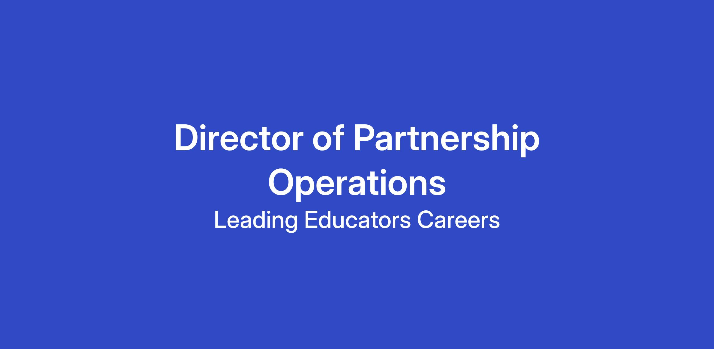Are you a strategic operations mastermind with a passion for transforming complex business systems? Leading Educators is seeking a Director of Partnership Operations who can be the operational backbone of our national growth strategy.