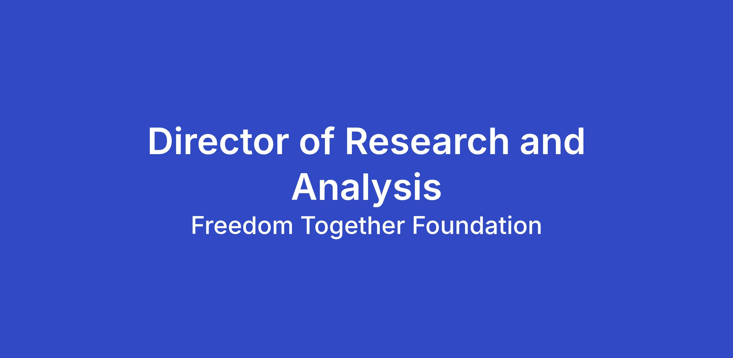 The Freedom Together Foundation seeks an experienced senior-level researcher to serve as its Director of Research and Analysis, a newly created position within the foundation. The Director of Research and Analysis will play a pivotal role in strategically shaping and executing the foundation's research strategies and help meet our evolving research needs.