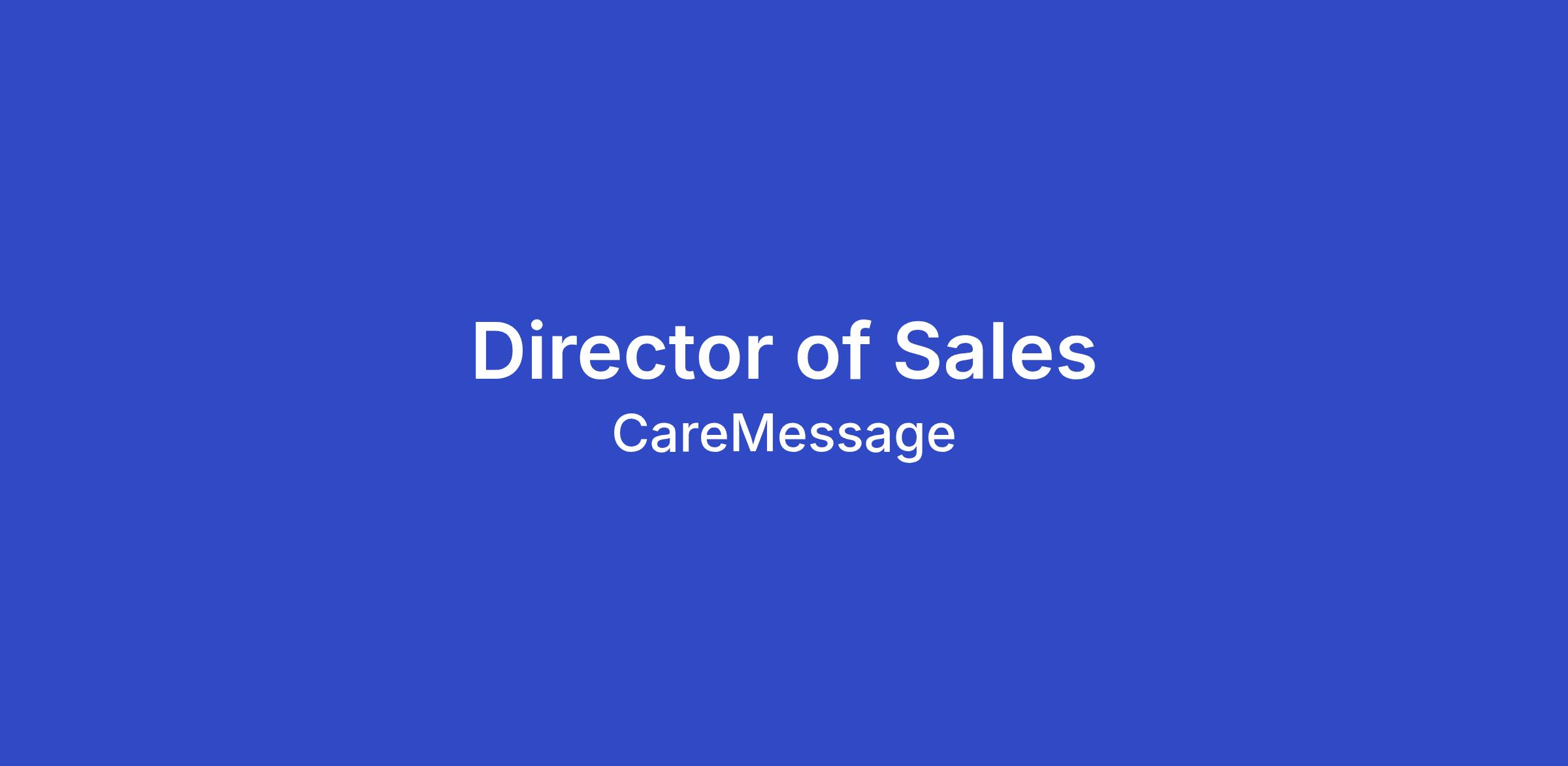 We are hiring a Director of Sales to own sales execution and sales outcomes across new business, renewals, and expansion, while also personally closing a meaningful portion of revenue. This role will lead a high-performing team of Growth Managers, who responsible for selling CareMessage solutions. This role is accountable for ensuring CareMessage consistently meets its revenue and expansion goals.