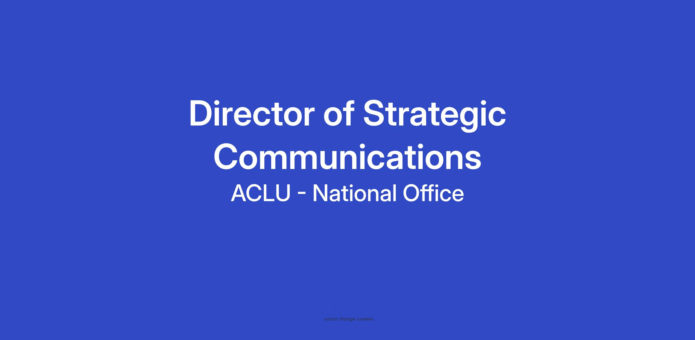 The ACLU seeks applicants for the full-time, term-limited position of Director of Strategic Communications in the Communications & Marketing Department of the ACLU’s National office in New York, NY or Washington, DC. This is a hybrid role that has in-office requirements of two (2) days per week or eight (8) days per month. This is a three-year term-limited position.