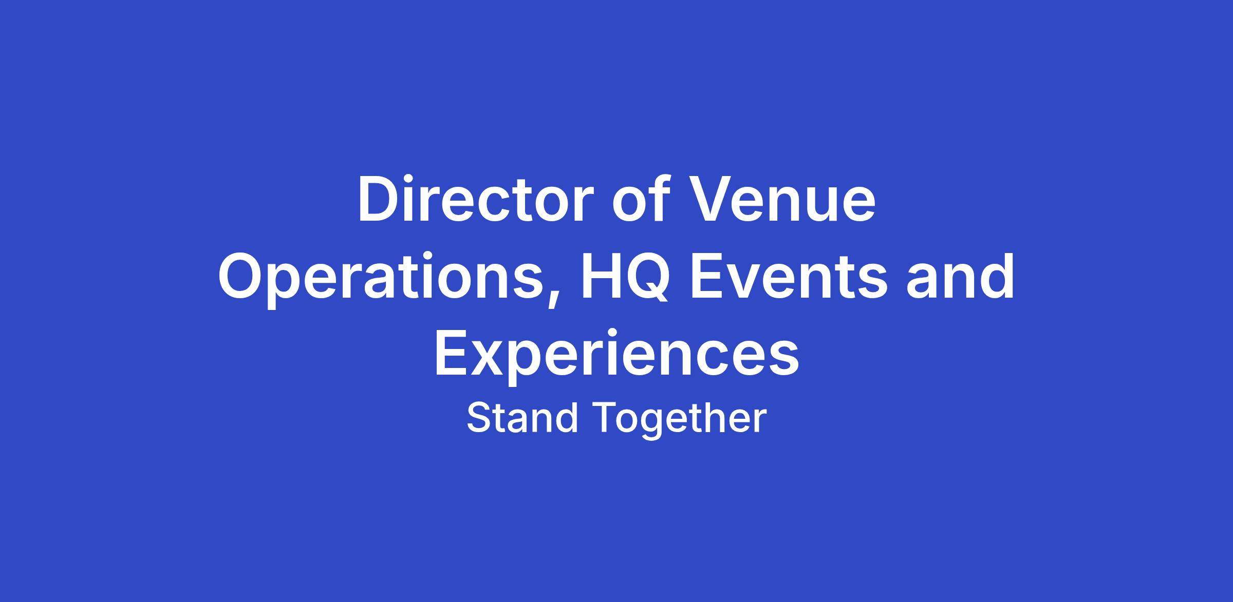 As the Director, Venue Operations for HQ Events & Experiences, you will lead the operational backbone that enables 400+ events annually at Stand Together’s headquarters. This role is responsible for building and scaling the systems, standards, and vendor partnerships that ensure every event, from small meetings to large-scale experiences, is executed with consistency, high service quality, and operational excellence.