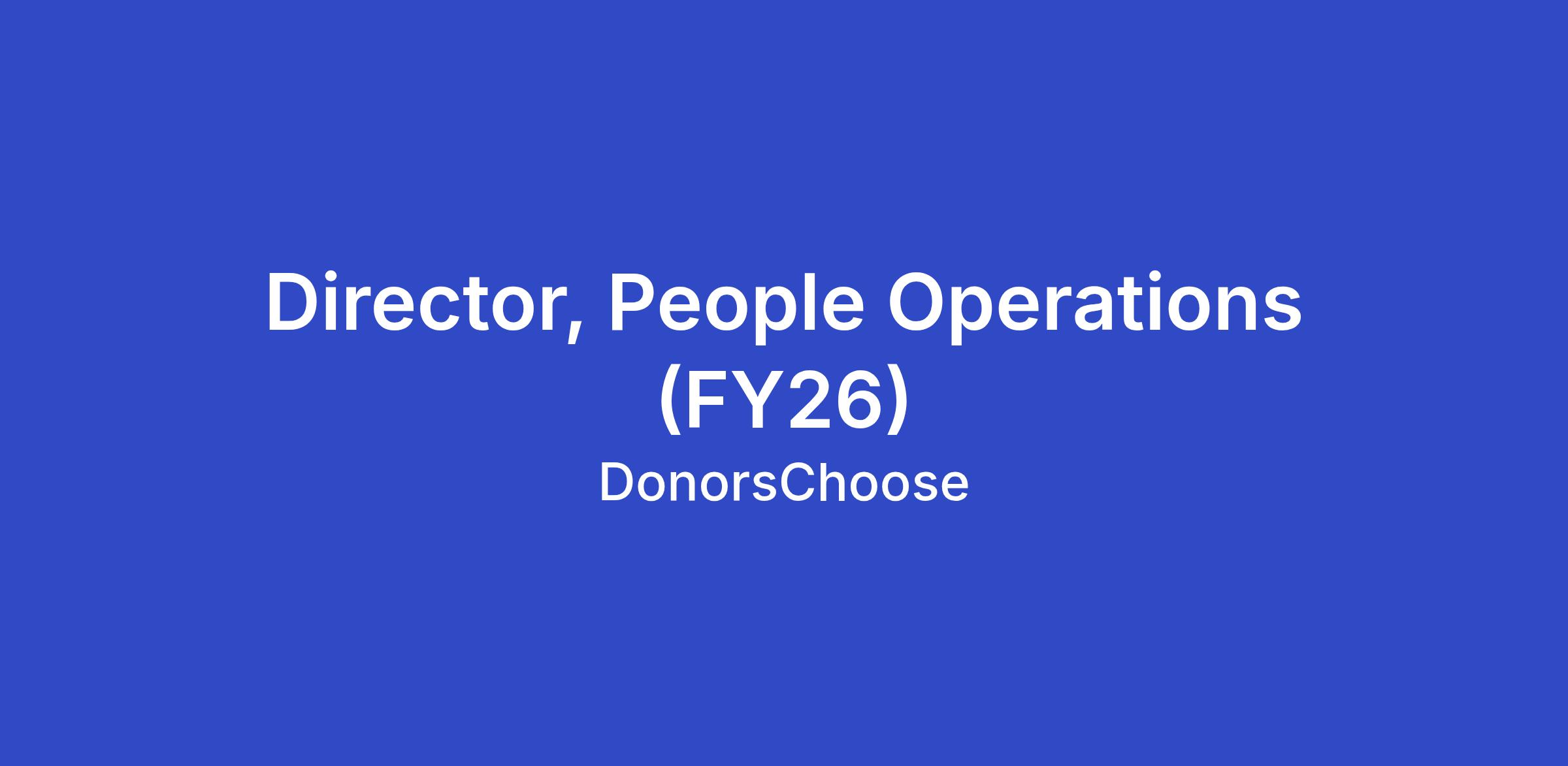 DonorsChoose is seeking a strategic, collaborative, and results-oriented Director, People Operations (DPO) to lead the organization’s people operations function across payroll, benefits, compensation, HR policies, compliance, and people data and systems. The DPO will design and implement scalable, equitable, and legally sound practices that support a distributed workforce of 200+ employees across 25+ states, ensuring that our people operations infrastructure meets the organization’s needs. In close partnership with leaders across the People & Talent team, the DPO will strengthen our compensation framework, benefits strategy, and HR technology ecosystem while embedding practices that advance transparency, consistency, and equity throughout the employee lifecycle. The DPO will also drive the development of reliable data systems and dashboards that deepen organizational insight and inform decision-making.