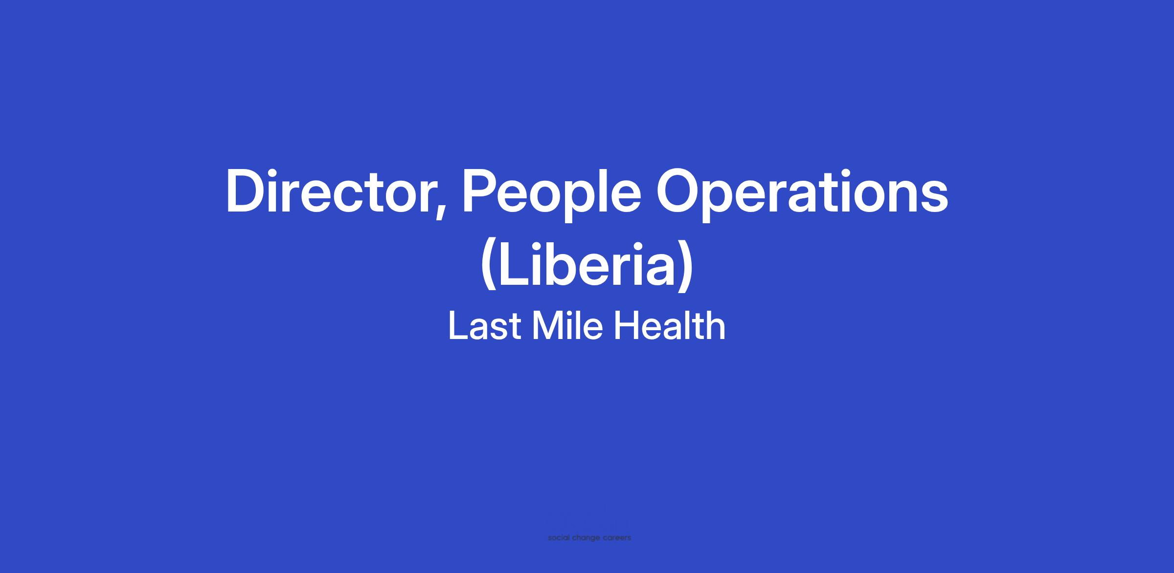 The Director, People Operations (Liberia) is a hands-on, strategic people leader responsible for driving excellence across all core HR functions in alignment with Last Mile Health’s strategic objectives. This role provides strategic business partnership to departmental managers and teams, ensuring that People Operations is a trusted and effective partner in achieving organizational goals.