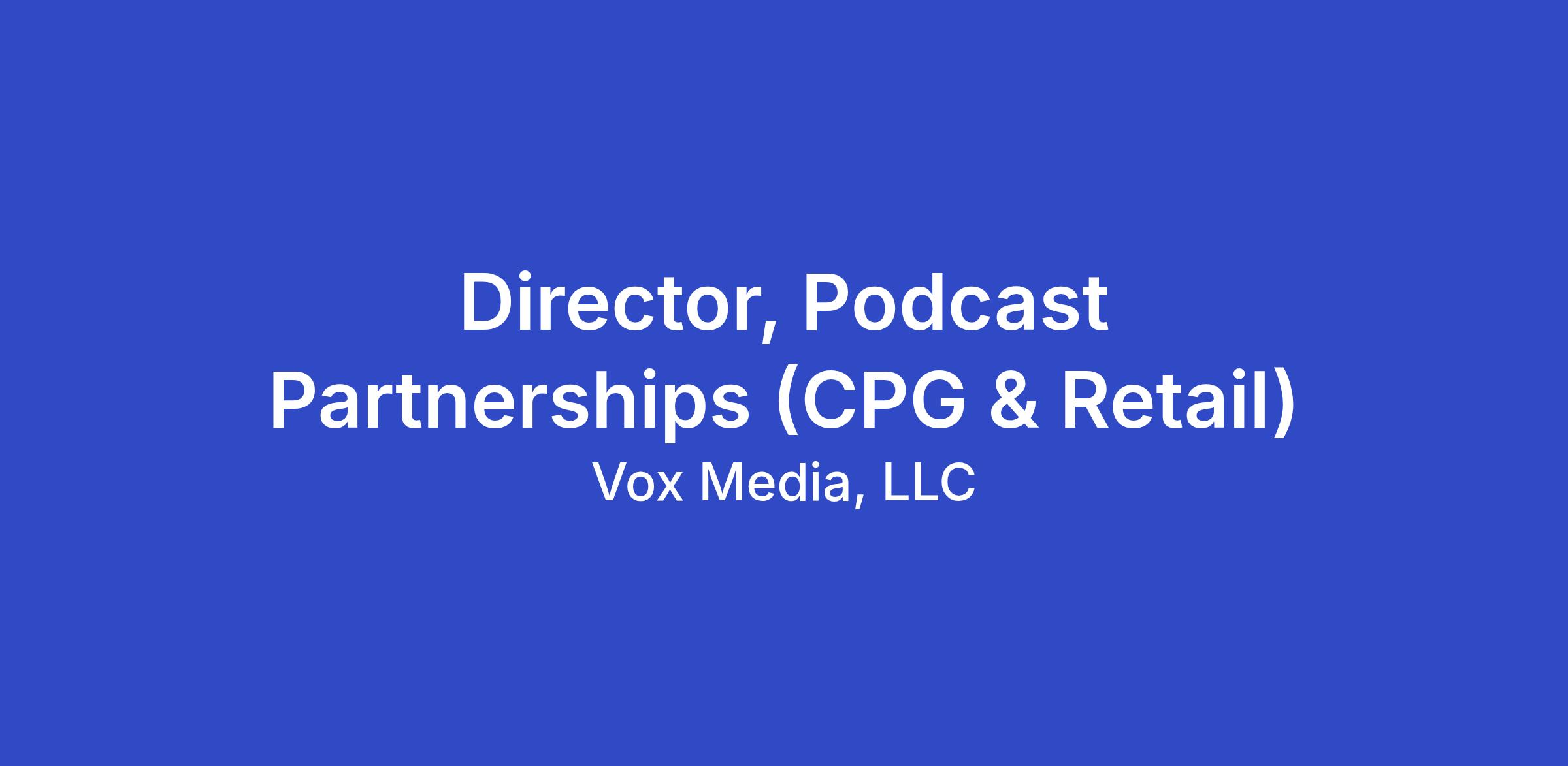 As a Director of Podcast Partnerships, you will be a driven revenue contributor responsible for growing relationships with CPG and Retail brands and developing new business across the Vox Media Podcast Network. You will serve as a strategic partner to brand marketers and agencies, delivering innovative podcast and talent solutions that connect brands with highly engaged, intellectually curious audiences at scale.