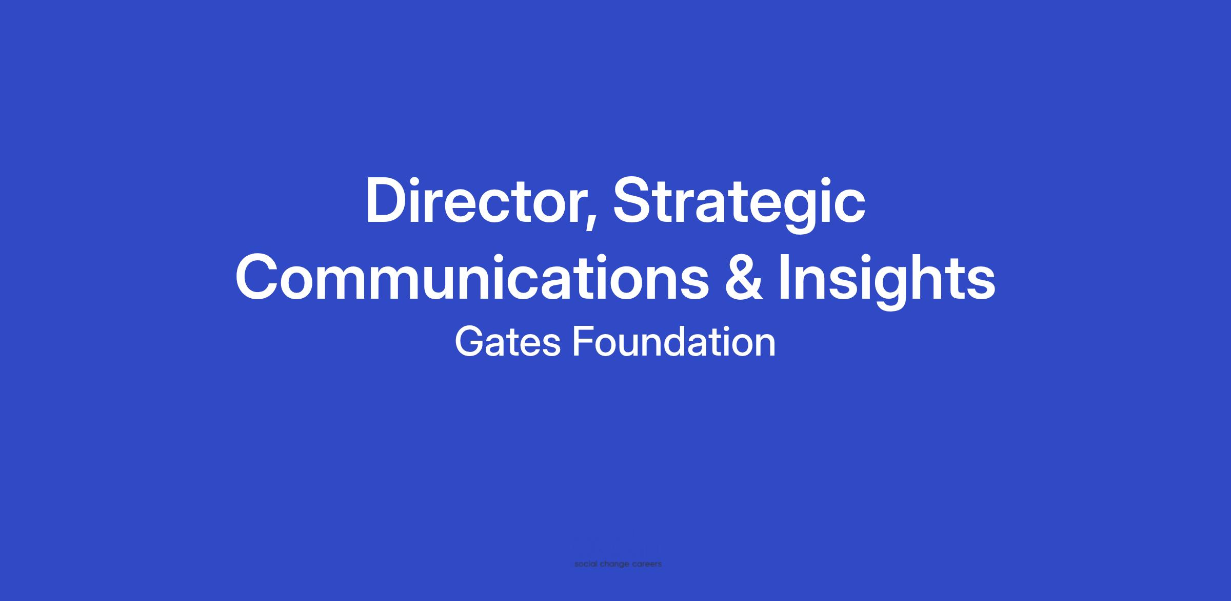 We are building a leadership team to accelerate the next phase of our strategy. As a senior communications leader, you will play a critical role in shaping how the foundation engages audiences, strengthens its reputation, and delivers on its mission. The Director, Strategic Communications & Insights will ensure the foundation stays ahead of the curve anticipating reputational risks, identifying societal trends, and leveraging data and technology to inform global communications strategy. You will serve as a strategic advisor to the CCO, your peers within the Communications Division, and senior partners across Global Policy & Advocacy (GPA) and other divisions, translating complex insights into clear, actionable strategies that shape how the foundation communicates and engages with the world.