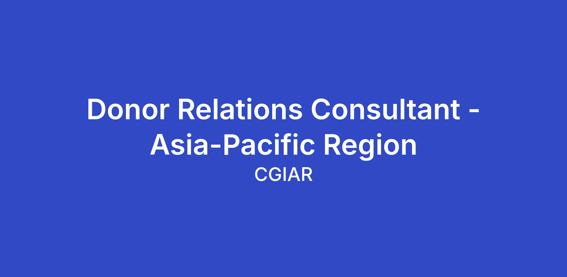 CGIAR’s Donor Relations and Business Development (DRBD) unit is responsible for driving strategic initiatives to engage with new and existing funders, secure sustainable funding, and diversify funding sources across CGIAR. To support this mission, DRBD is seeking a consultant with proven fundraising experience and an established network of contacts in the Asia-Pacific region to steward and expand a pipeline of potential investors in CGIAR programs.