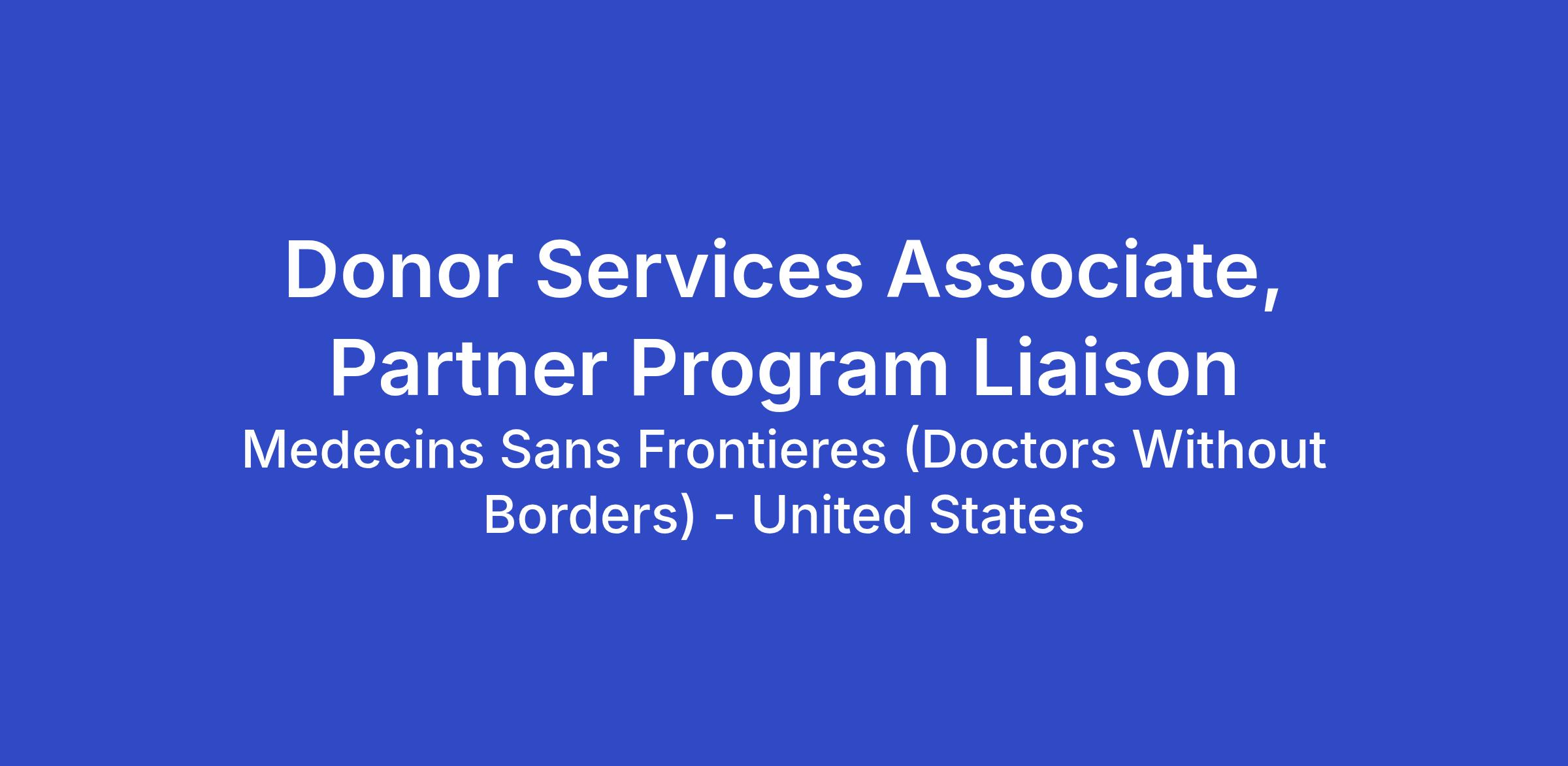 The Donor Services Associate for the Partner Program Liaison serves as one of the primary points of contact for our donors, helping answer their questions, solve their problems, and facilitate their donations as well as participates in the development of messages for donors about MSF’s programs and policies. Donor Services Associate provides high-quality customer service both on the phone and through e-mail all year round.