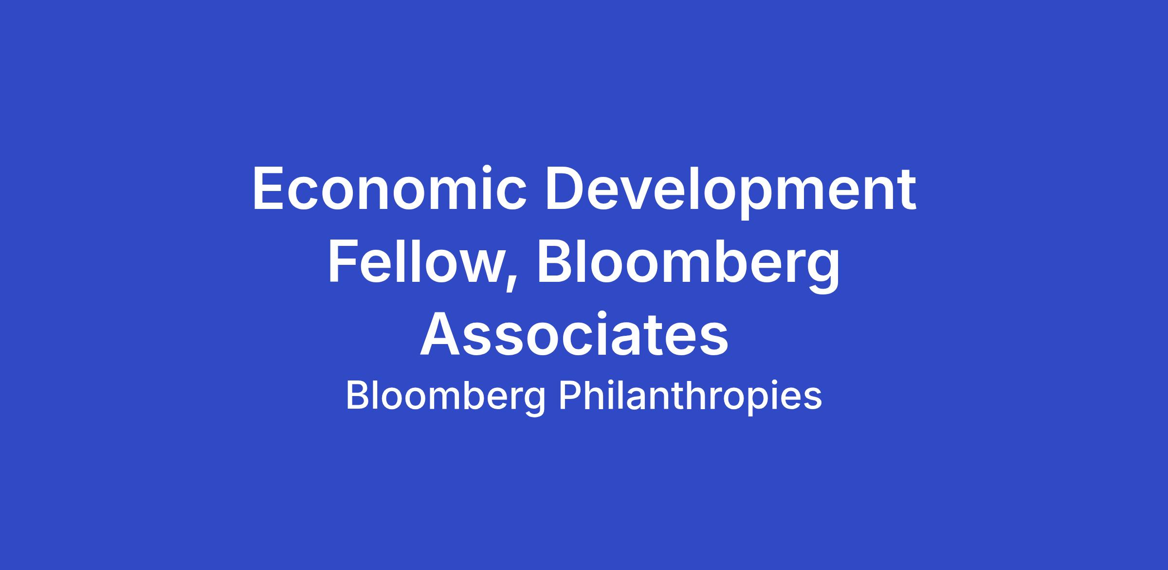 The Economic Development Team at Bloomberg Associates is seeking a Fellow to support the team on a range of economic and workforce development projects with US client cities. The Team supports clients on economic strategy, sector-based business development, small business support, neighborhood development, workforce development, commercial property regeneration projects, tourism promotion and strategic support.