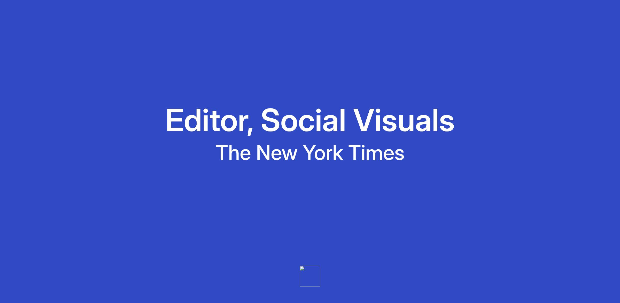 The New York Times is continuing to expand our presence across social media platforms. The Social Visuals team's core mission is to identify compelling visual stories across the depth and breadth of our report. We showcase the expertise of Times journalists, share urgent news updates, and promote and elevate some of our most compelling visual material. The team applies expert design, photo editing, art direction and social platform expertise to the visuals that lead and accompany the way our work is presented to our audiences off platform.