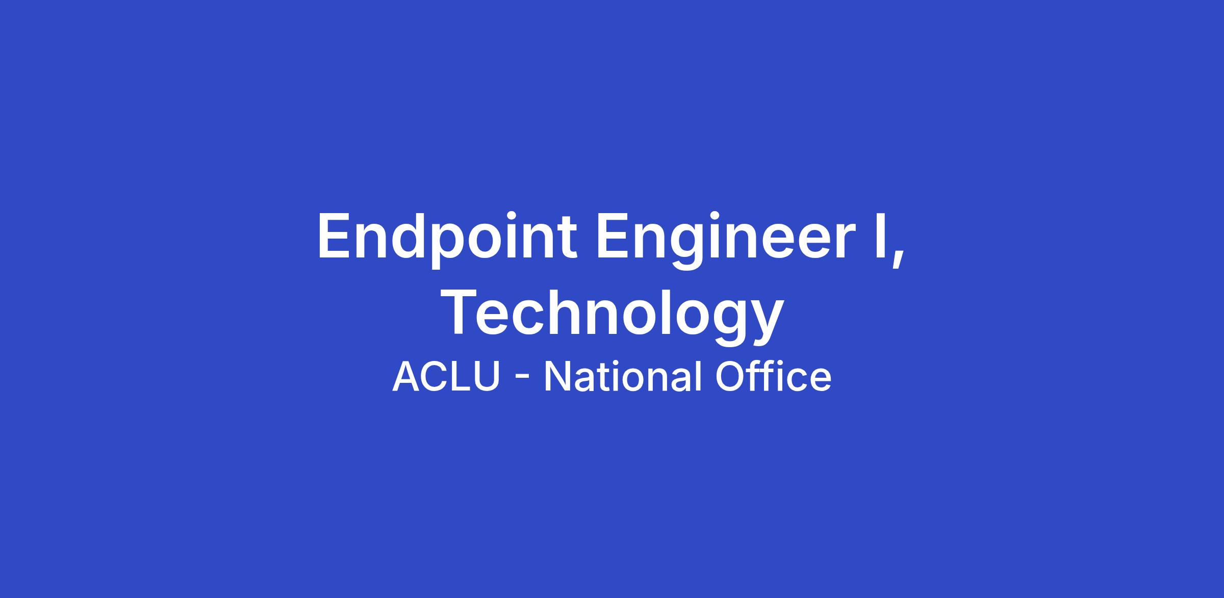 The ACLU seeks applicants for the full-time position of Endpoint Engineer I in the Information Technology Department of the ACLU’s National office in New York, NY. This is a hybrid role that has in-office requirements of four (4) days per week or sixteen (16) days per month.
