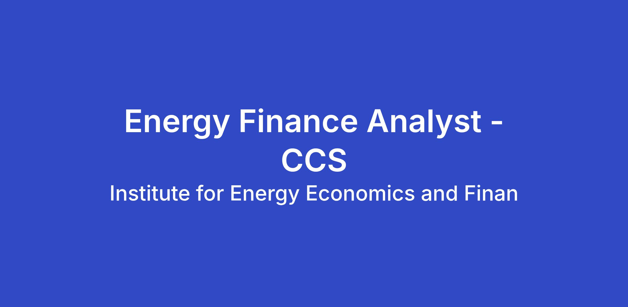 Energy Finance Analyst - CCS (Australia – Remote)