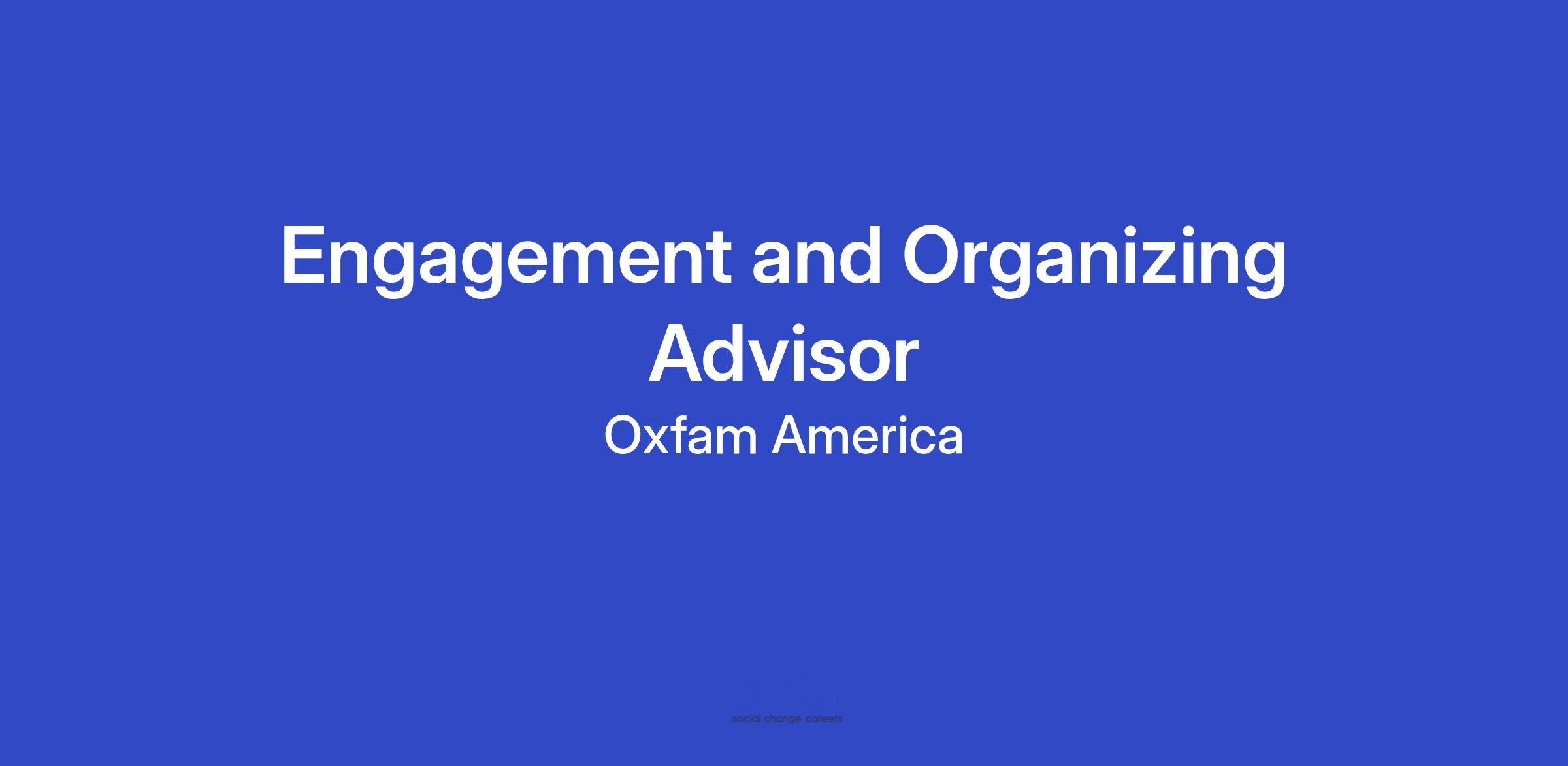 This position is a core member of the Brand & Engagement team that leads Oxfam’s work to recruit new supporters, nurture leadership, and deepen supporter involvement in Oxfam’s mission to fight inequality to end poverty and injustice. Under the direction of the Senior Manager, the Engagement & Organizing Advisor will implement plans and tactics that mobilize new and existing supporters, including national influential supporters, allies, and volunteers—who are passionate about confronting inequality locally and globally. With support and direction from the senior manager, this role will focus on creating an engaged network of supporters to take action in support of Oxfam's work on issues including economic justice and humanitarian crisis around the world. The ideal candidate is a convener and community-builder who brings creative tactics, a deep understanding of organizing, advocacy, and a strong commitment to anti-racist and feminist principles.