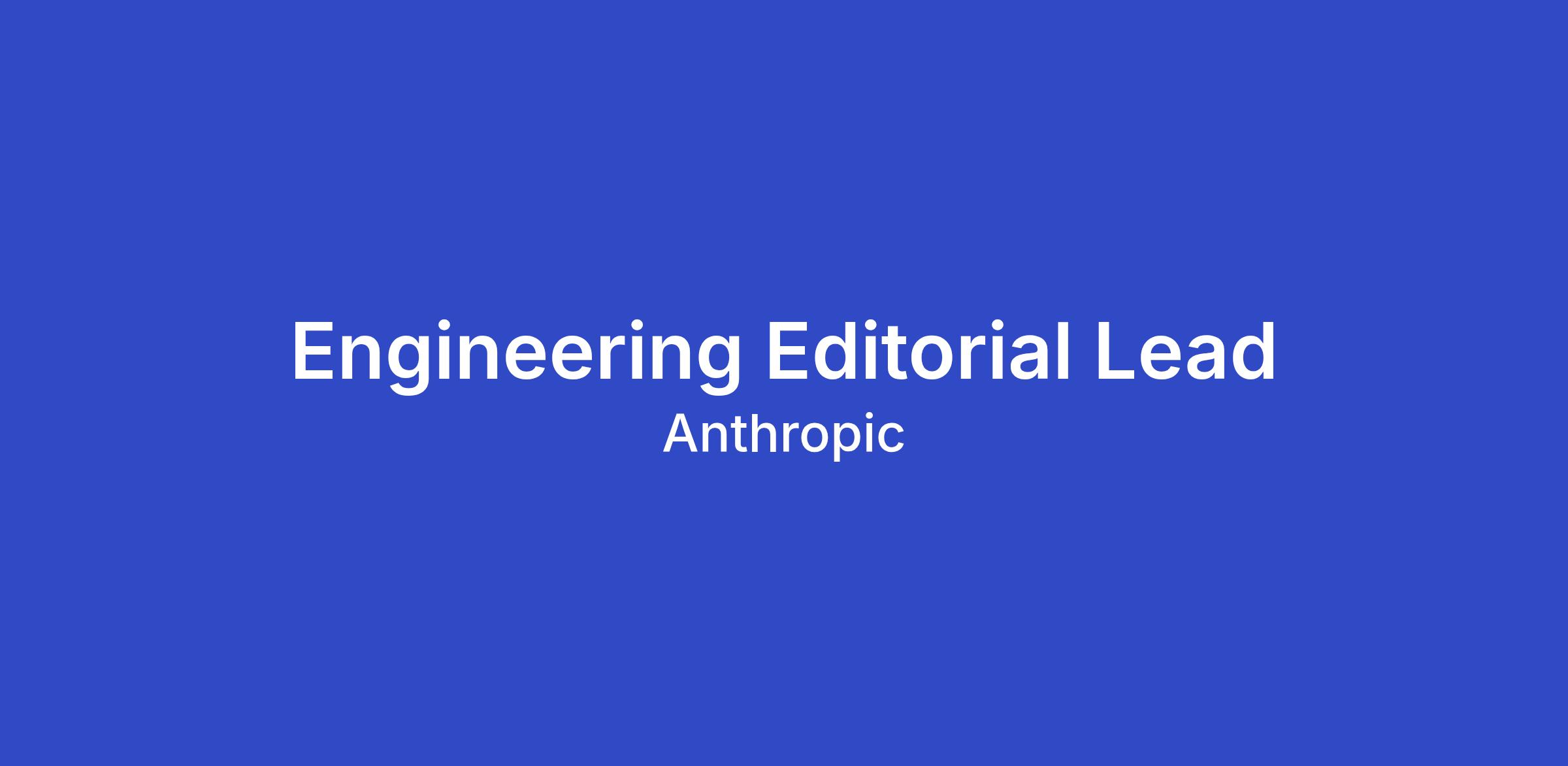 Anthropic is looking for an Editorial Lead to own our engineering blog — one of the most visible ways we share how we build, what we learn, and why it matters. This is a role for someone who can bridge the gap between highly technical work and a broad, curious readership, turning complex engineering stories into posts that are rigorous, accessible, and compelling to read.
