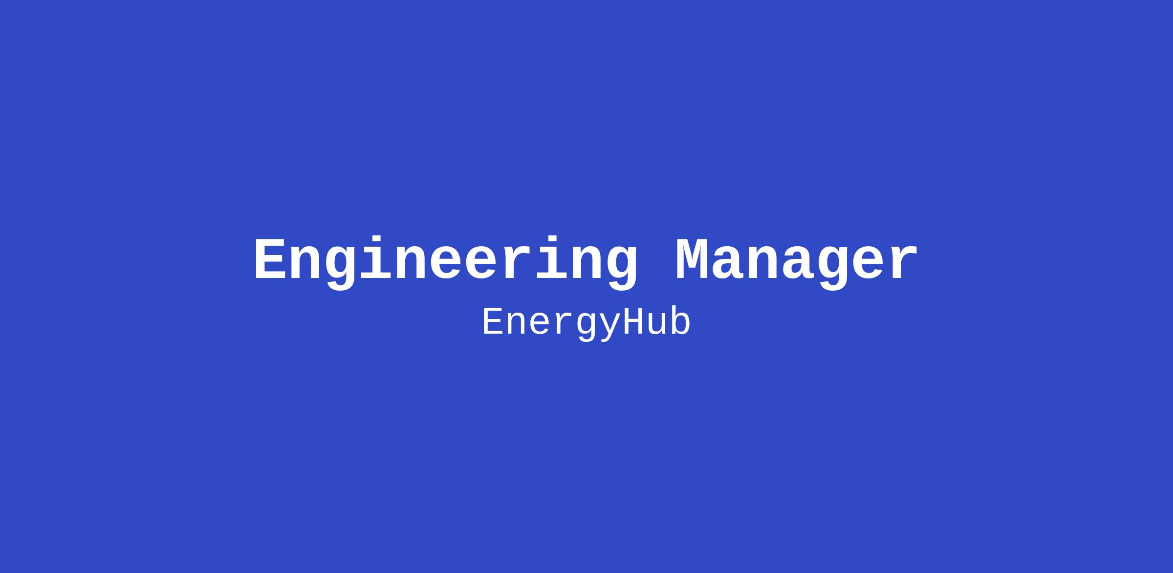 We are looking for an Engineering Manager who thrives in a fast-paced, dynamic environment, comfortable navigating ambiguity while moving projects forward, and motivated to build programs and processes that foster greater team organization, efficiency and scalability across the organization. This person will focus on people management, strategic alignment and software development projects that have a meaningful impact on the progress of EnergyHub everywhere.