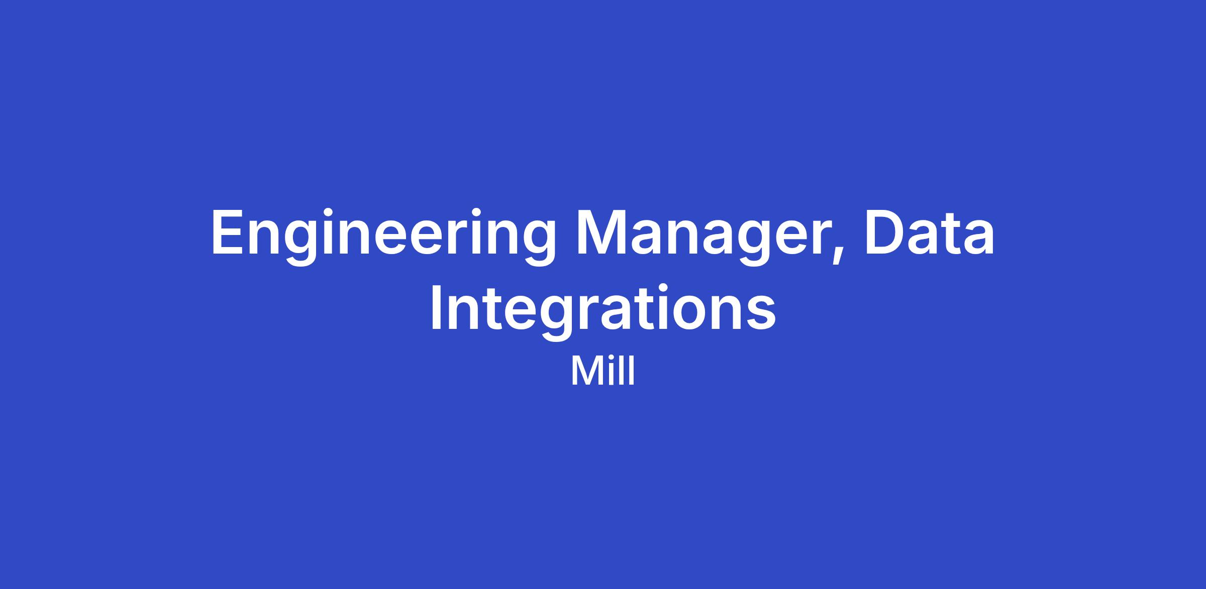 We're hiring a Senior Engineering Manager to lead Data Integrations at Mill. This role sits at the center of our B2B strategy: you'll own the systems that integrate Mill into our customers' enterprise environments — ERP systems, business applications, internal tools — so that we can combine our food waste estimates with their internal data and use AI to deliver actionable recommendations on how they can reduce waste.