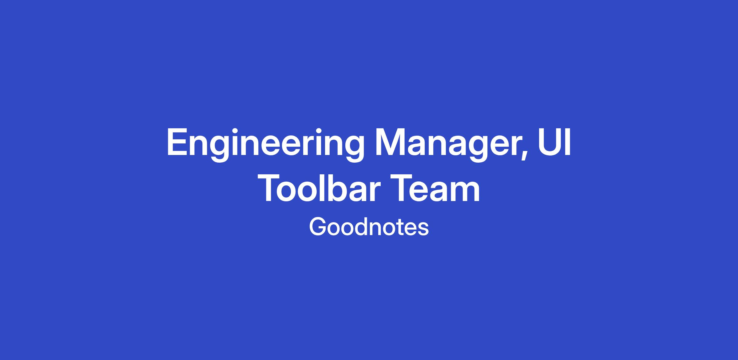 We are seeking an experienced Engineering Manager to lead our Toolbar Team, which builds some of the most heavily used user interfaces in the Goodnotes editing experience.