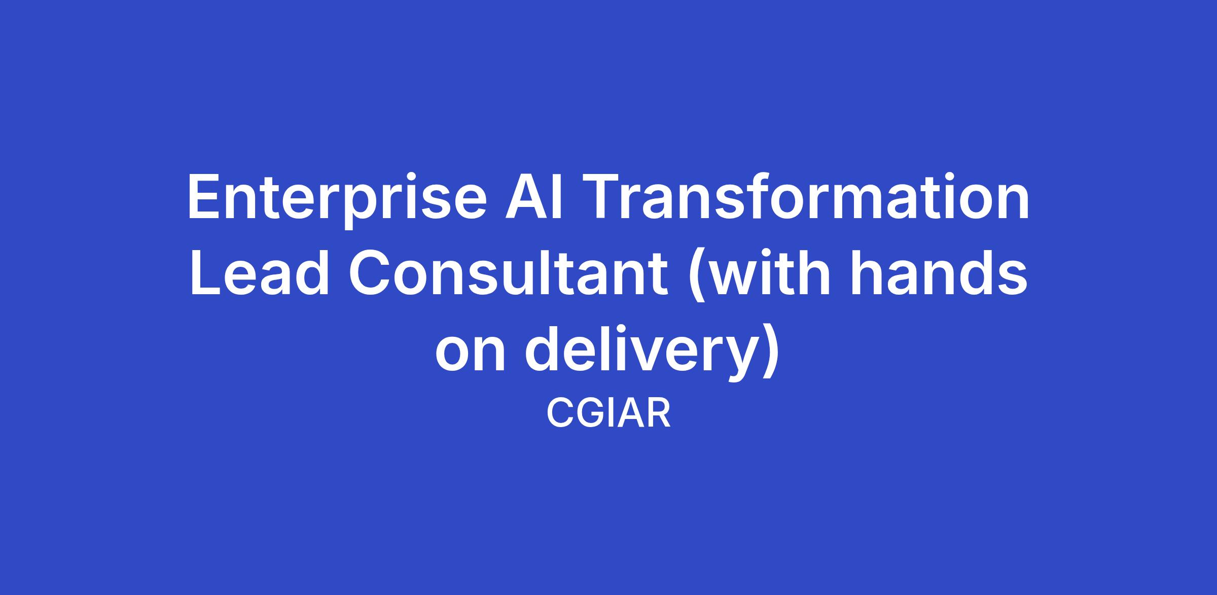 Enterprise AI Transformation Lead Consultant (with hands on delivery)