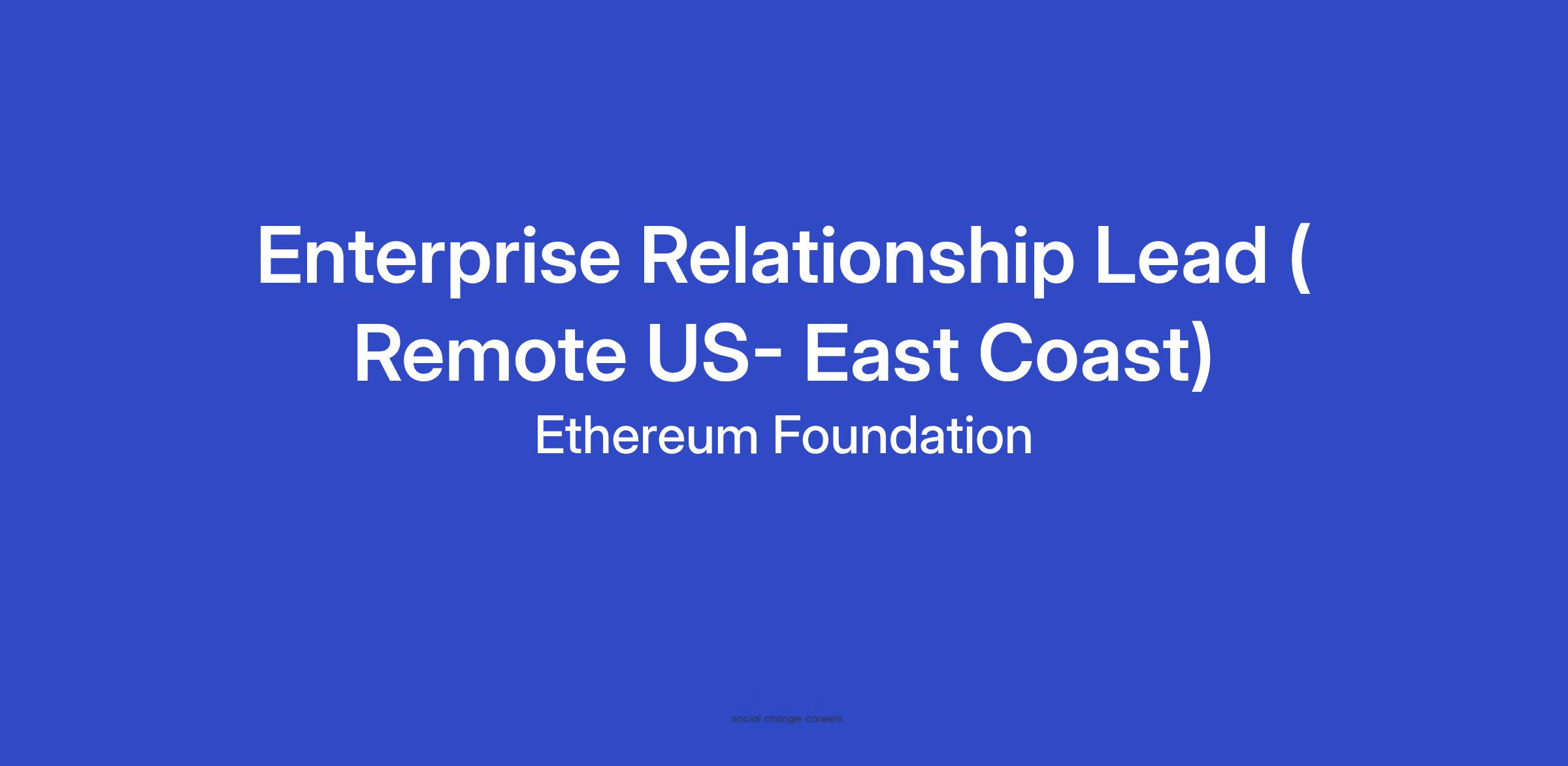 We're looking for a proactive, people-oriented Enterprise Relationship Lead to play a crucial role in building and nurturing relationships for the Ethereum ecosystem.We want to hear from you if you thrive in connecting complex organizations with open-source communities while advocating for public blockchain technology.