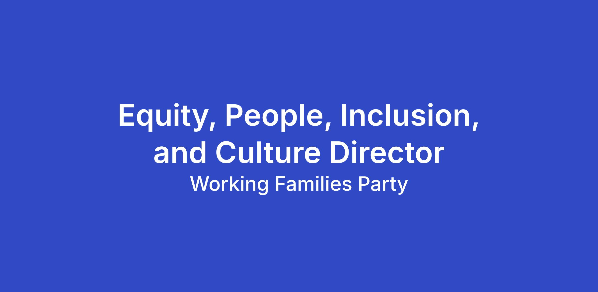 The Equity, People, Inclusion, and Culture (EPIC) Director leads the strategy for building a fair, supportive, and high-performing workplace at Working Families Party and Working Families Power. This role shapes how we recruit, develop, support, and retain our staff, and helps ensure people feel connected, valued, and clear on what matters most as we pursue our shared goal of building power for working class people of every race.
