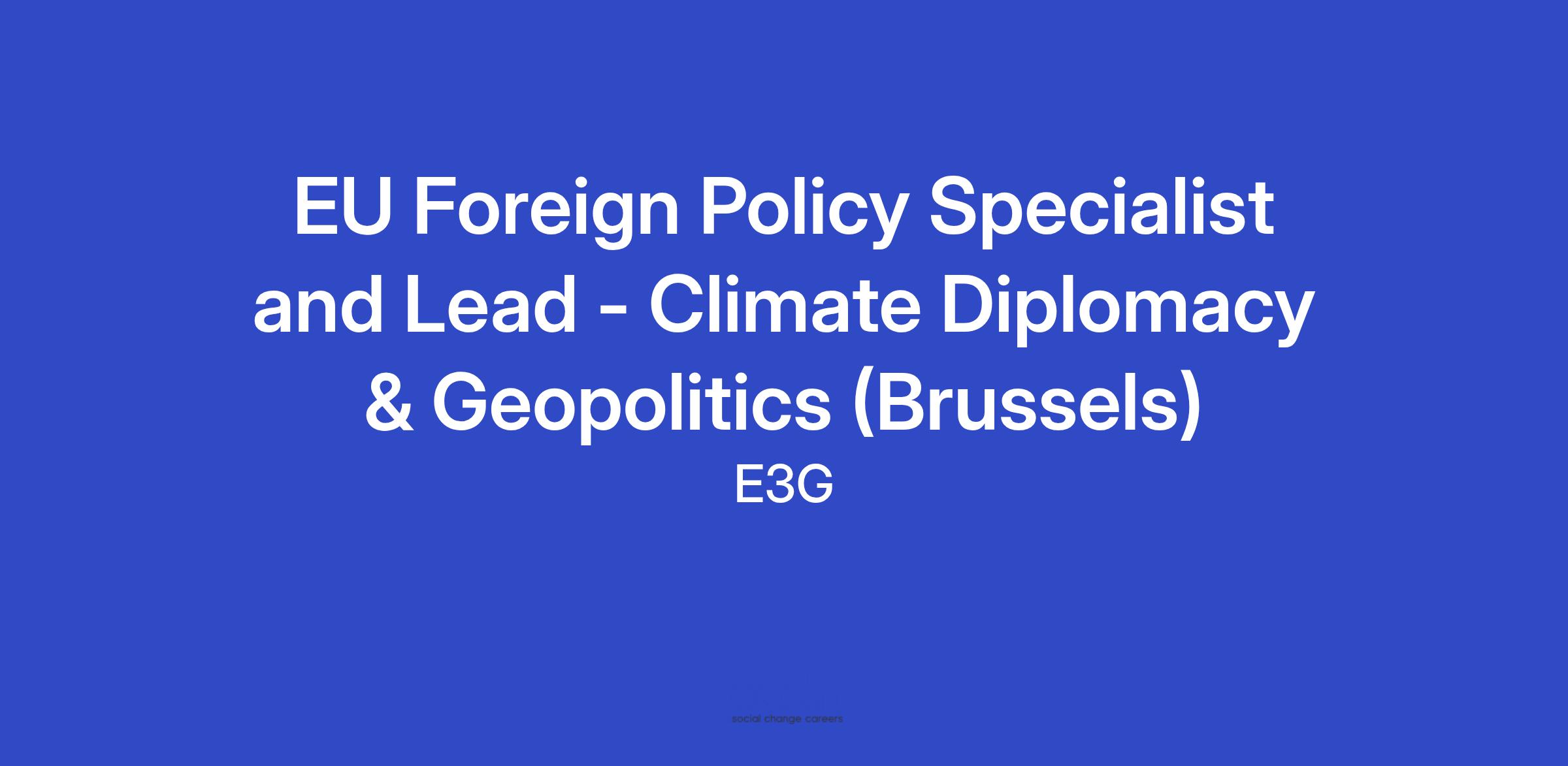 EU FOREIGN POLICY SPECIALIST AND LEAD - CLIMATE DIPLOMACY & GEOPOLITICS (BRUSSELS)