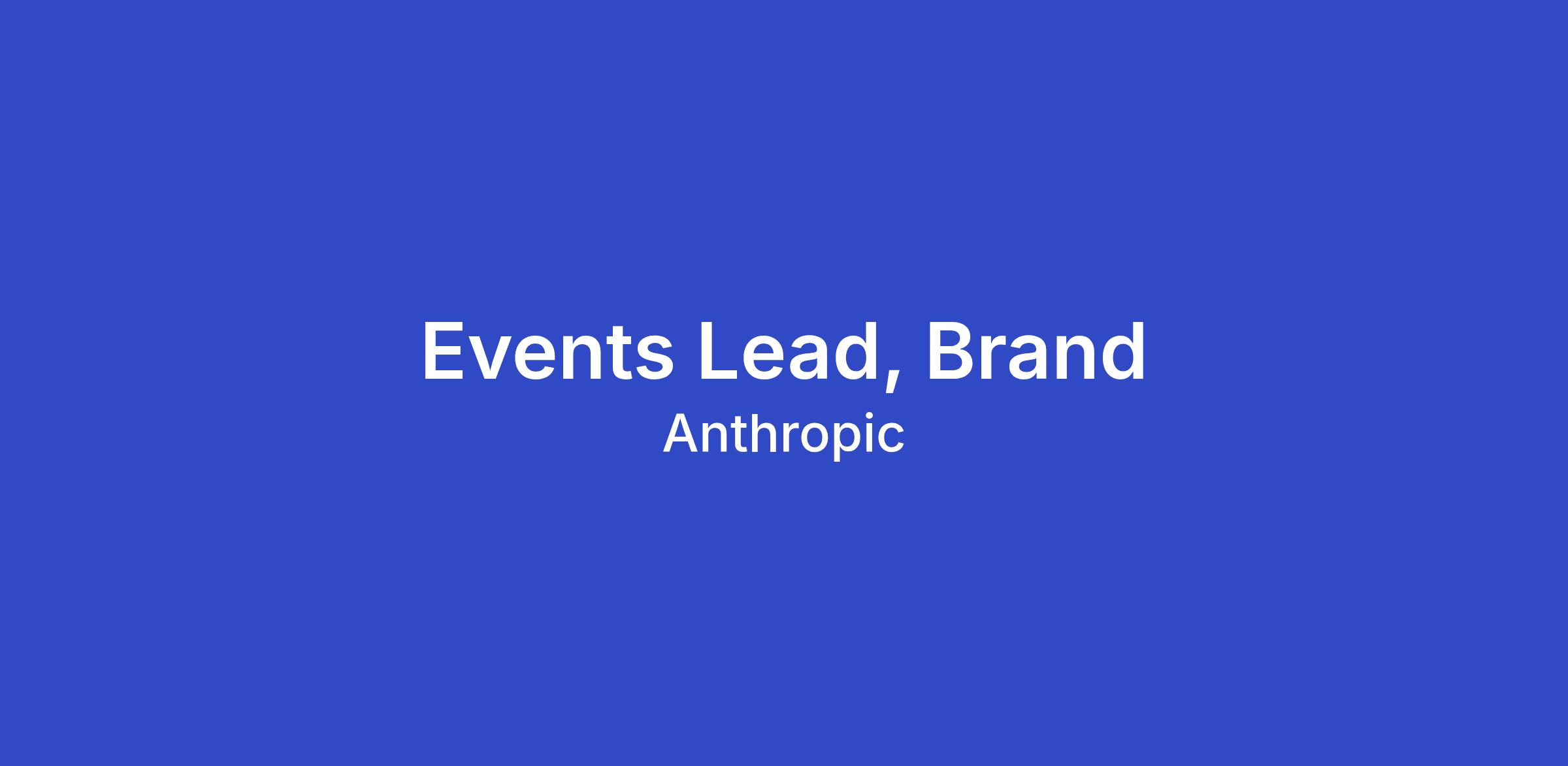 As an Events Lead, Brand at Anthropic, you will own the strategy and execution of brand-focused events that create meaningful experiences and build Anthropic's share of mind in the AI landscape. You'll sit within the Marketing Events team and be responsible for conceptualizing, producing, and measuring events that authentically communicate who Anthropic is and what we stand for—from intimate thought leadership gatherings to large-scale brand activations at industry tentpole moments.