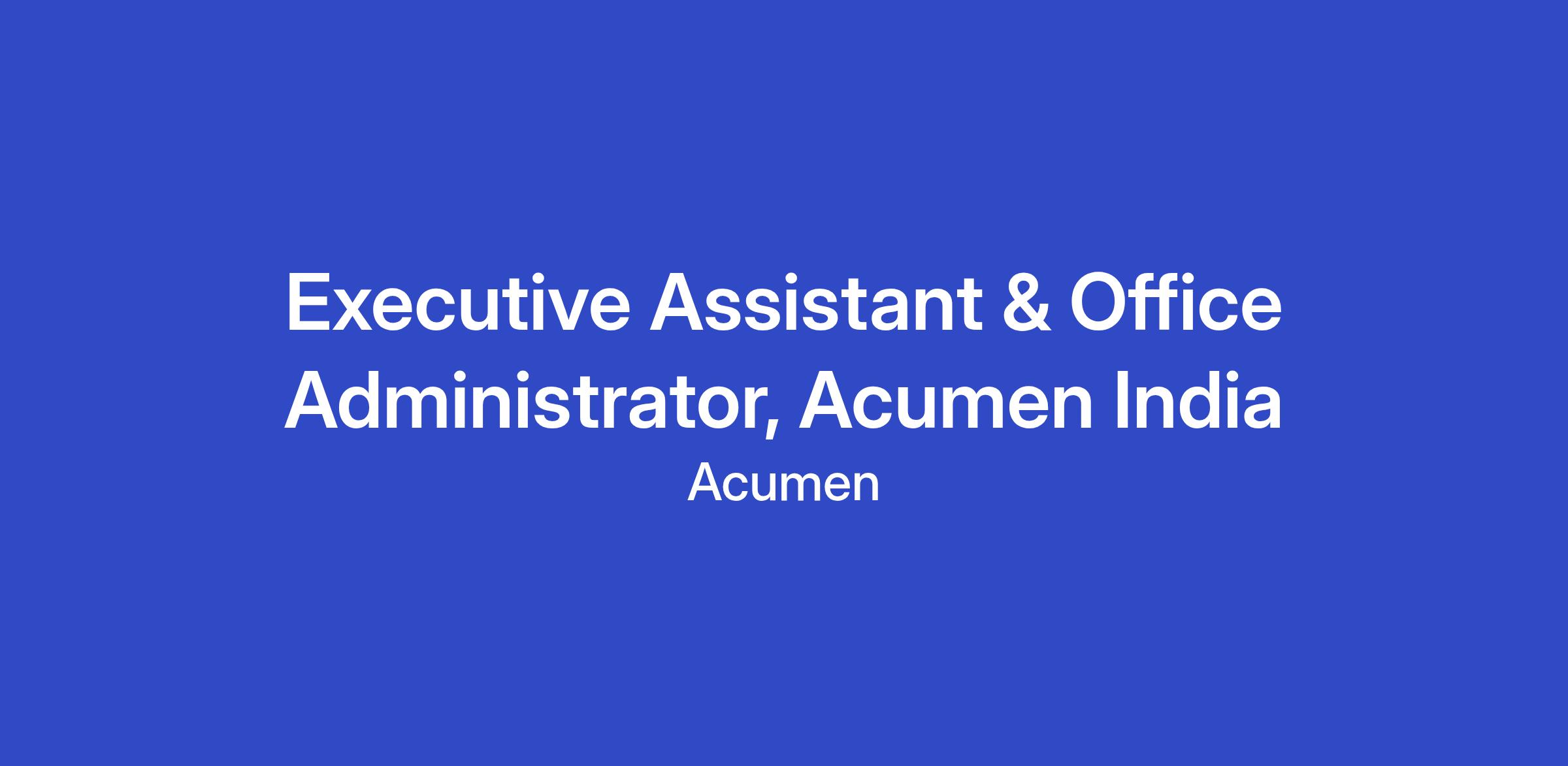 Acumen is seeking an Associate with at least 5 years of experience in office administration or executive support to join the Acumen India team. This role will be based out of our Mumbai office and will play a key role in supporting senior leadership and ensuring the smooth day-to-day functioning of the office.