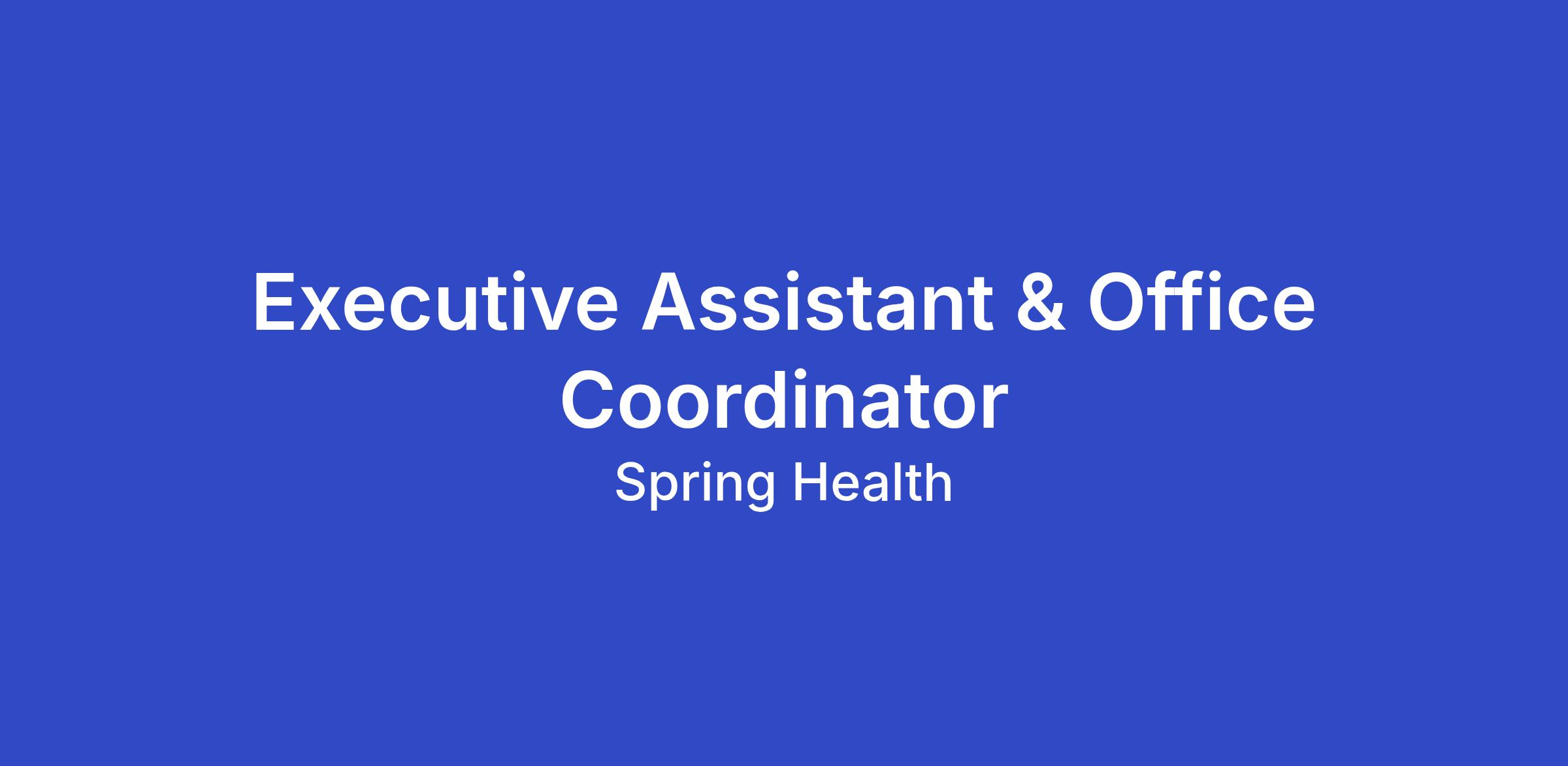 Spring Health is seeking a highly organized, proactive, and service-oriented Executive Assistant / Office Coordinator to support key leaders in our San Francisco office while helping create a seamless in-office experience for employees and visitors. This role will be a key operational presence in the SF office, while supporting our Chief Technology Officer and Chief Information Security Officer.