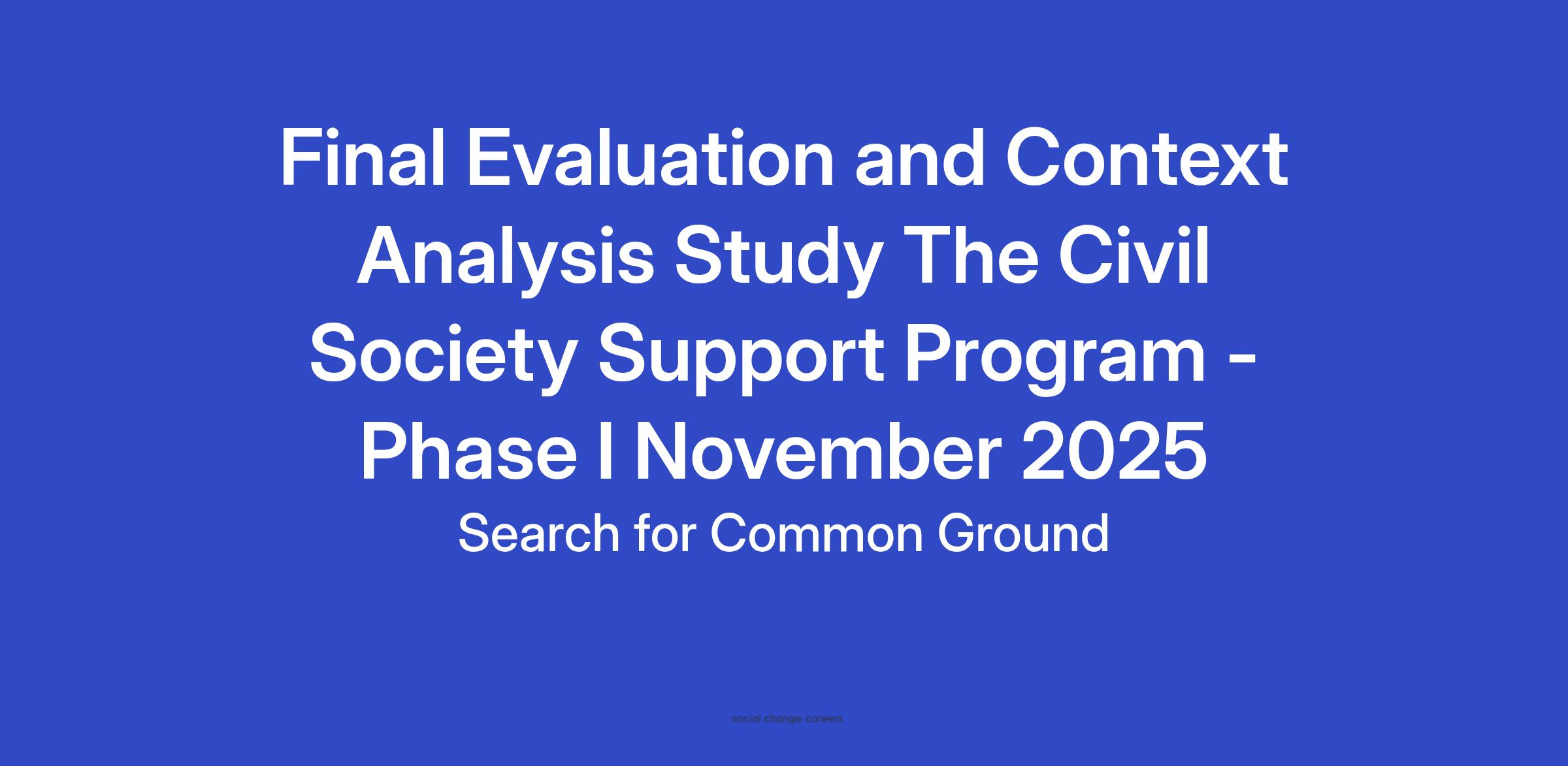 - The endline evaluation aims to assess the overall impact of the “Civil Society Support Program” implemented by Search for Common Ground (Search), focusing on how effectively the initiative has empowered Syrian civil society within a complex and evolving context over its 24-month duration. The evaluation will provide Search and its donors with evidence to inform future program design by examining the project’s impact, effectiveness, and sustainability. Specifically, it will assess the project’s relevance, efficiency, effectiveness, impact, and sustainability in line with OECD-DAC evaluation criteria, while also evaluating the program’s adaptability to evolving circumstances. Based on this, the objectives of the final evaluation are as follows: