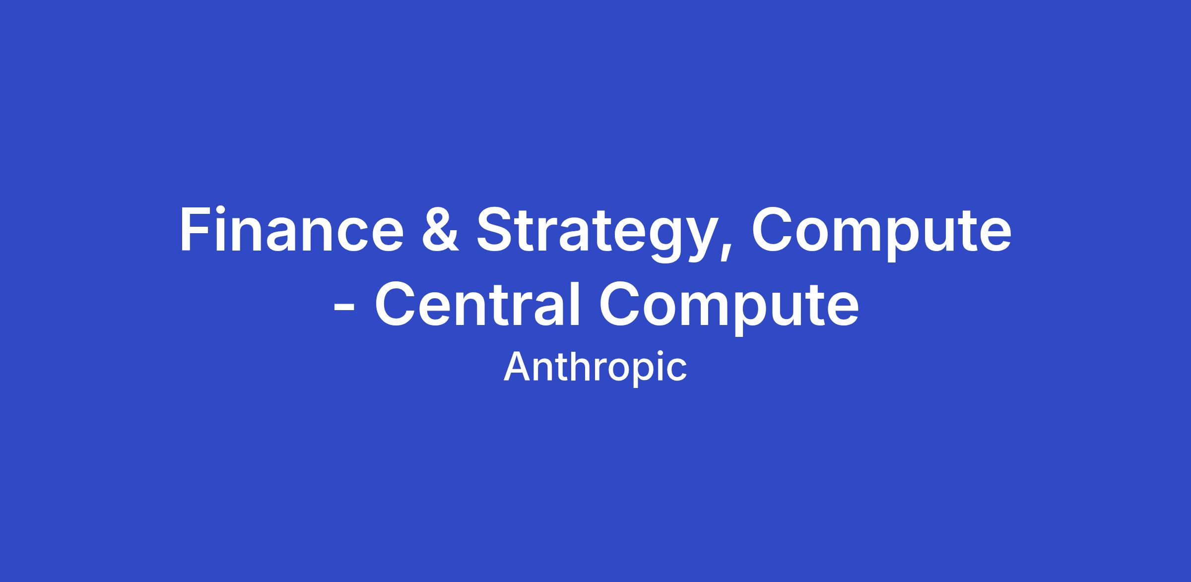 We are seeking a Strategic Finance Lead to own the consolidated financial view across Anthropic's compute infrastructure organization. Compute finance spans across accelerators, cloud spend, direct infrastructure, datacenters and data partnerships. This role sits at the center: owning the consolidation, the operating cadence, the cost allocation methodology, and the executive-facing narrative that ties them together.