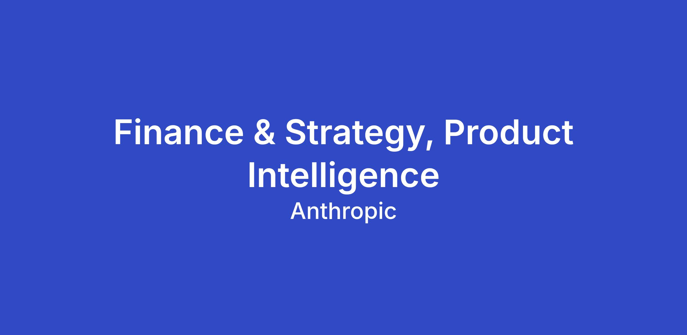 We are looking for a Finance & Strategy, Product Intelligence team member to join our Finance team at Anthropic. In this role, you will help the company build and maintain a well-informed view of the AI market, and ensure that understanding flows to the people making strategic and financial decisions. You will research, analyze, and communicate what is happening across the industry, and why it matters for Anthropic.
