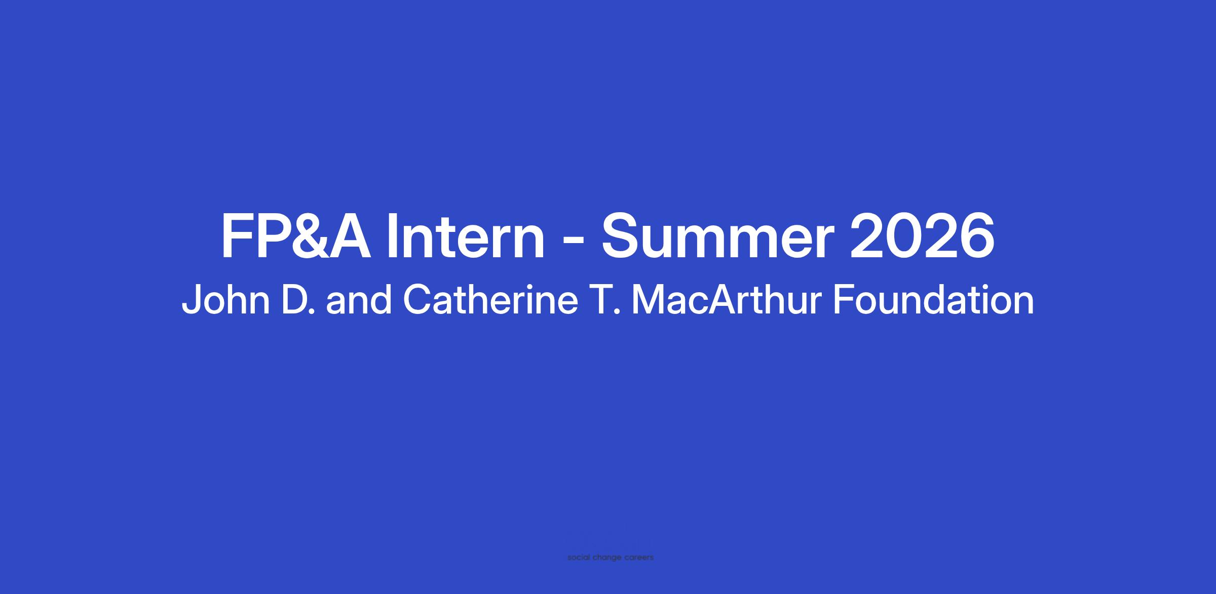 Position: Financial Planning & Analysis Intern - Summer 2026