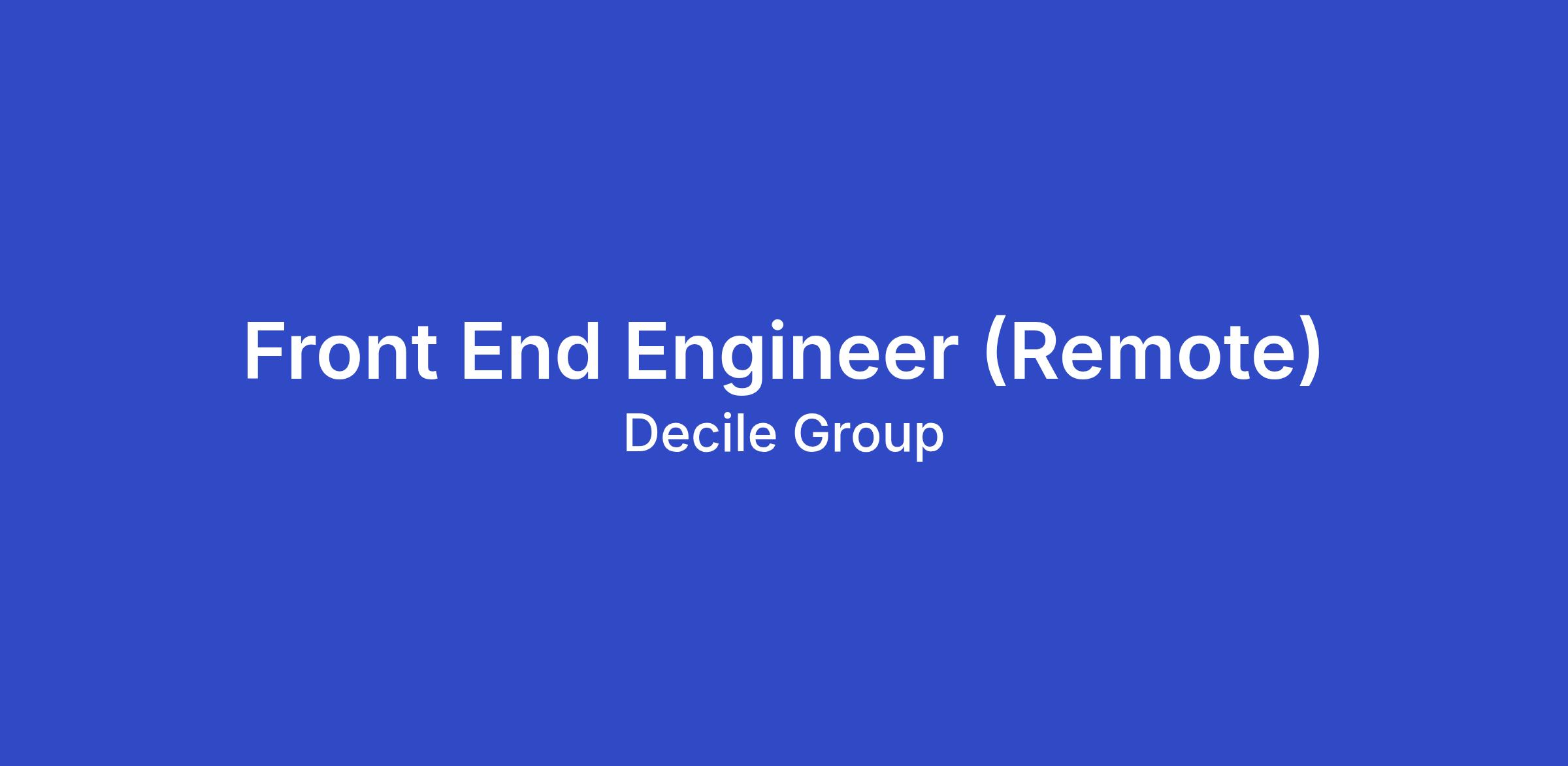 Build polished, performant front-end experiences. Own the UI layer of Decile Hub features — from layout and interaction design to responsive behavior and accessibility. Care about every pixel.