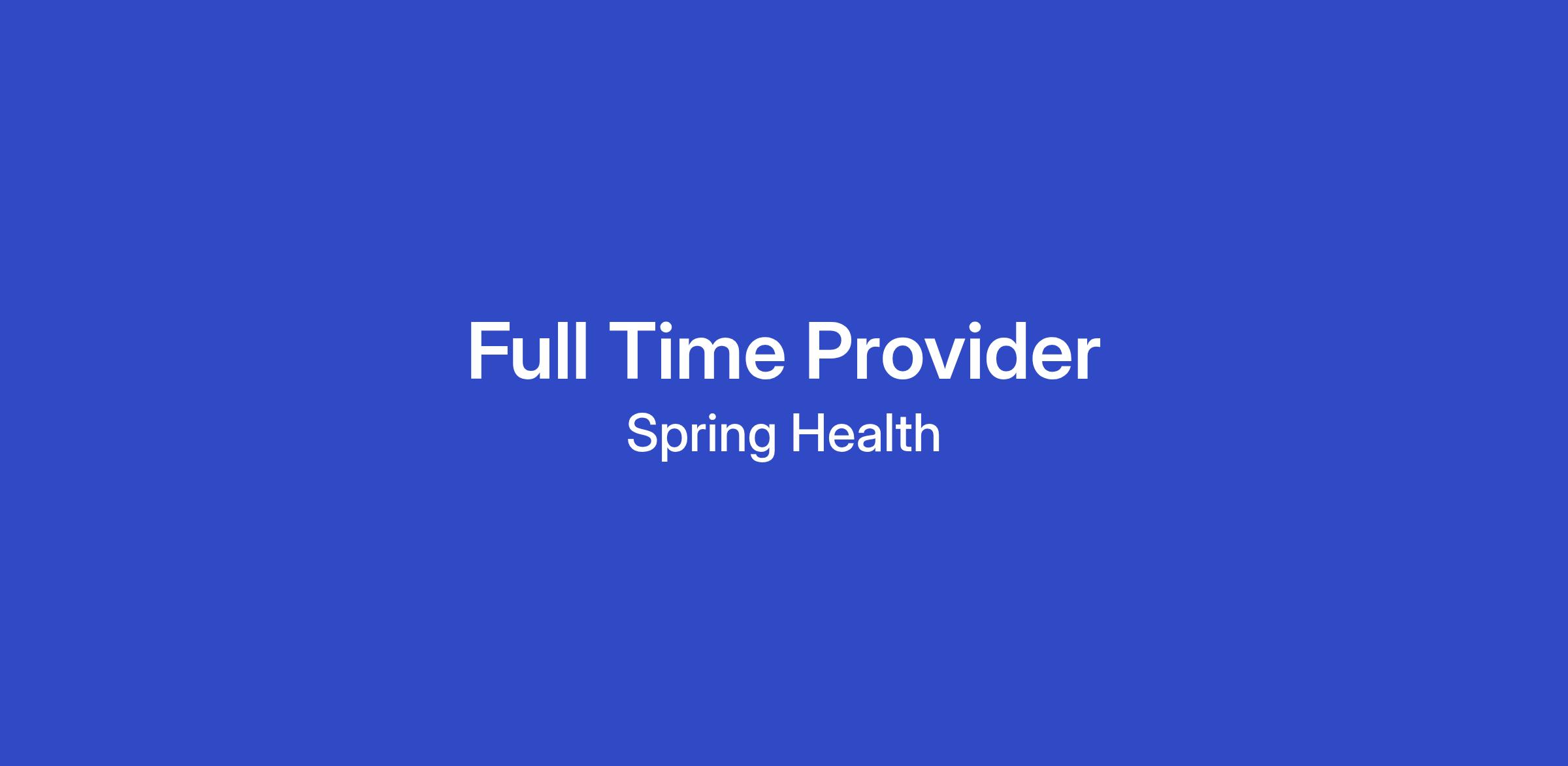 As a full-time mental health provider for Spring Health, you will focus on care delivery of Spring Health’s member network.