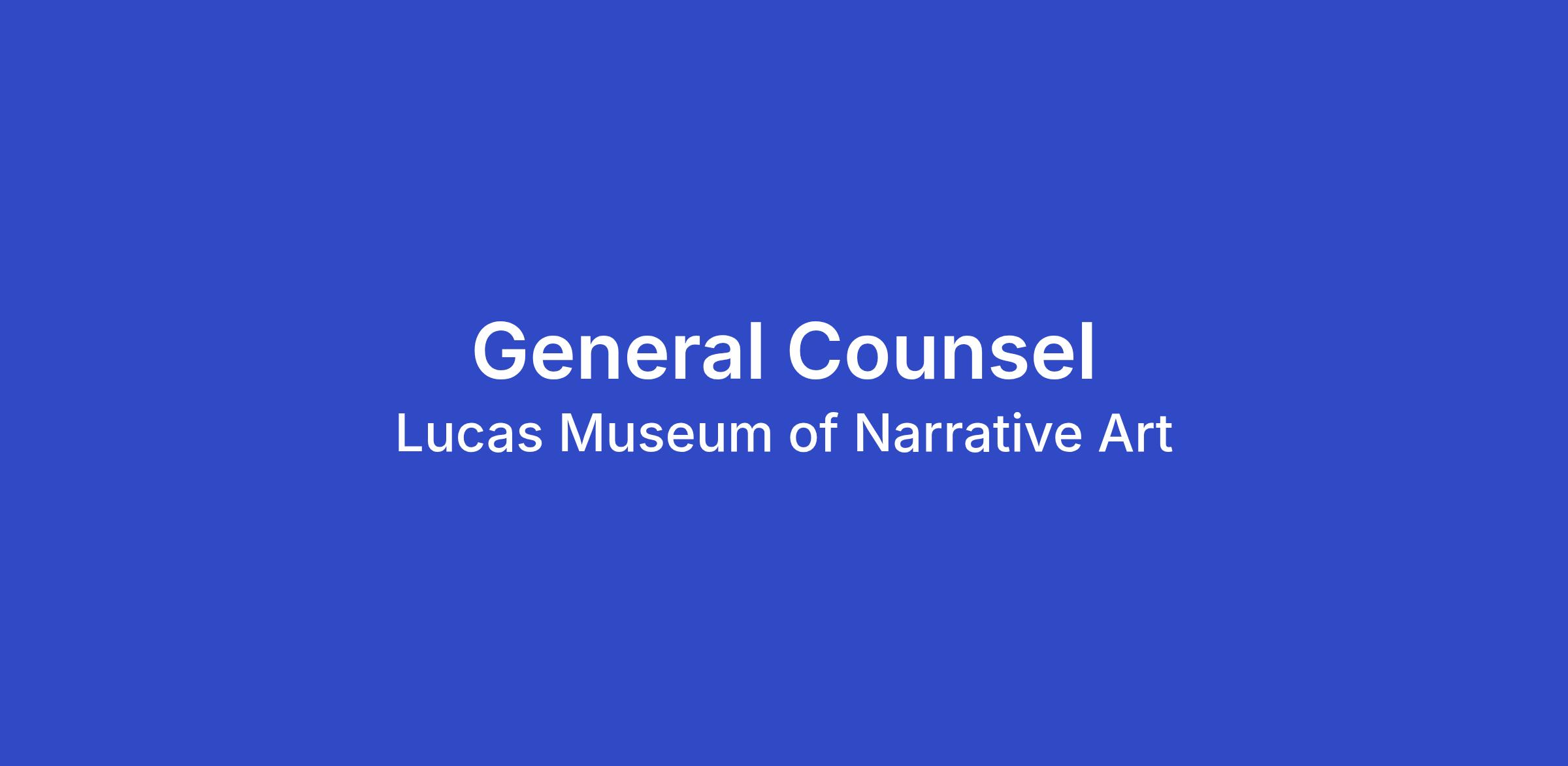 The Lucas Museum of Narrative Art seeks a General Counsel to lead and oversee all legal matters of the Museum. Reporting to the Chief Operating Officer, the General Counsel will serve as an integral member of the organization and a trusted advisor across the Museum.
