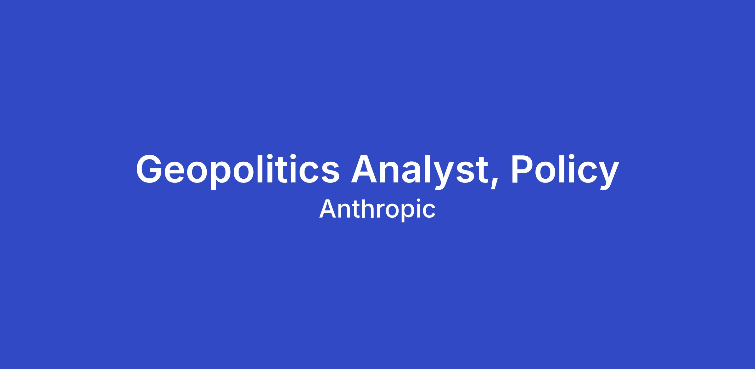 The Geopolitics Analyst will build and maintain Anthropic's understanding of international AI developments. You'll track the full stack of AI competition—compute, energy, model capabilities, corporate strategies, capital flows, talent pipelines, adoption patterns, and government policy—and translate that analysis into actionable analysis for both internal strategy and external engagement.