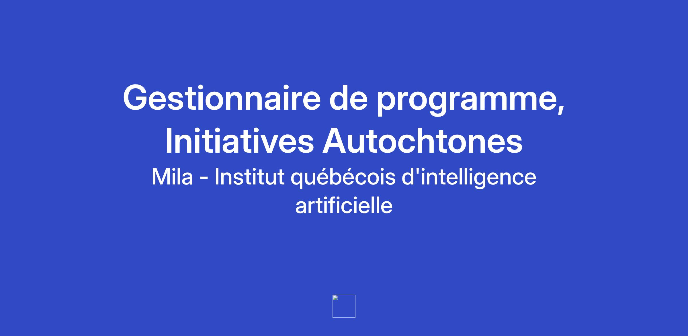 Mila est à la recherche d’une personne passionnée et dévouée pour occuper le poste de gestionnaire de programmes, initiatives autochtones. Le titulaire ou la titulaire de ce poste sera responsable de propulser le succès du programme «Indigenous Pathfinders in AI» (Éclaireurs autochtones en IA) ainsi que d’autres activités d’apprentissage et initiatives clés liées aux communautés autochtones.