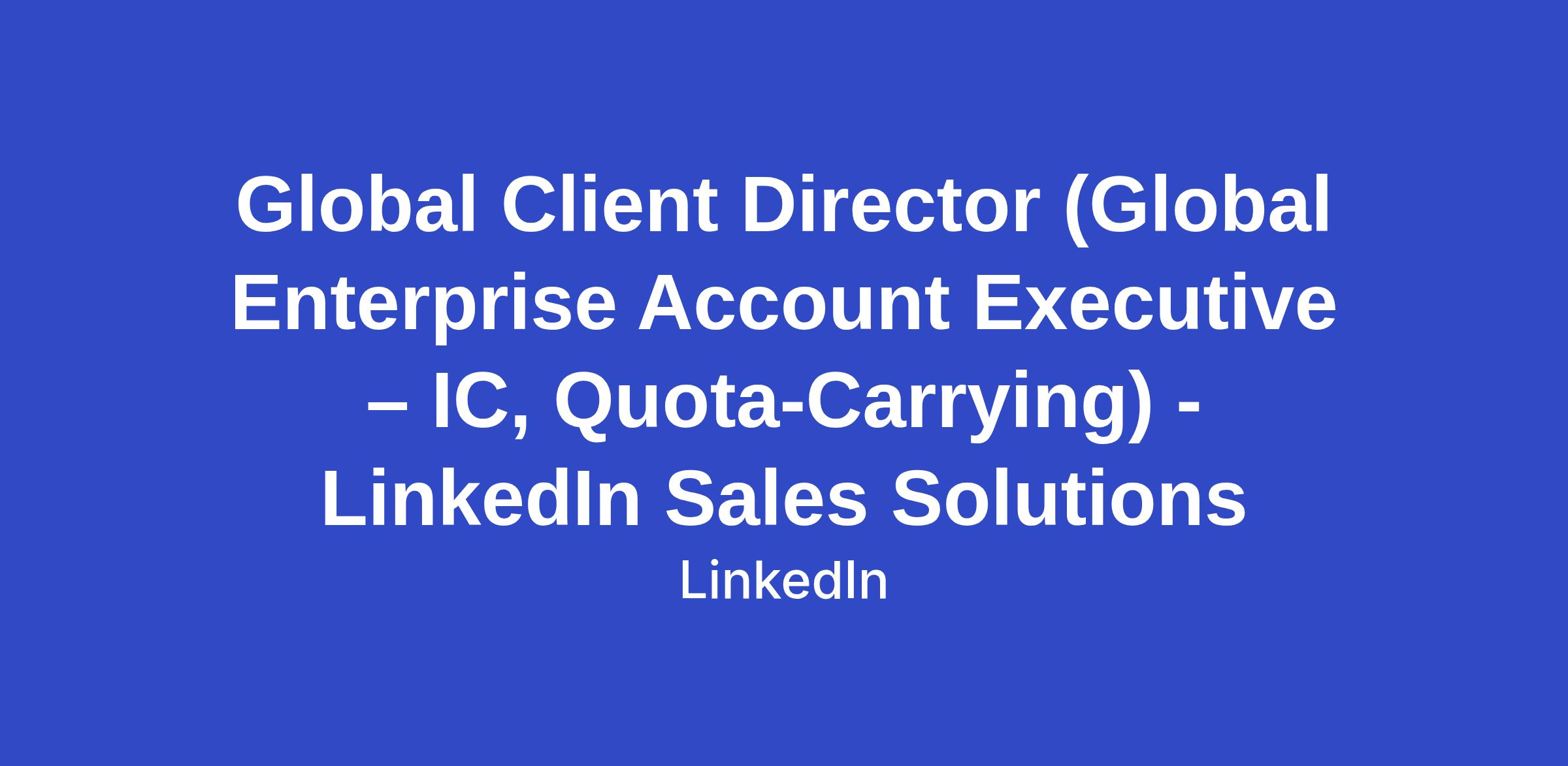 This is an opportunity to join the exciting and dynamic LinkedIn Sales Solutions global accounts program selling Sales Navigator. The role is for a Global Client Director, responsible for renewing and growing the Sales Navigator footprint within a select number of vitally important named accounts. This is a senior IC sales role responsible for owning global new business and expansion quota across Fortune 200 multinationals.