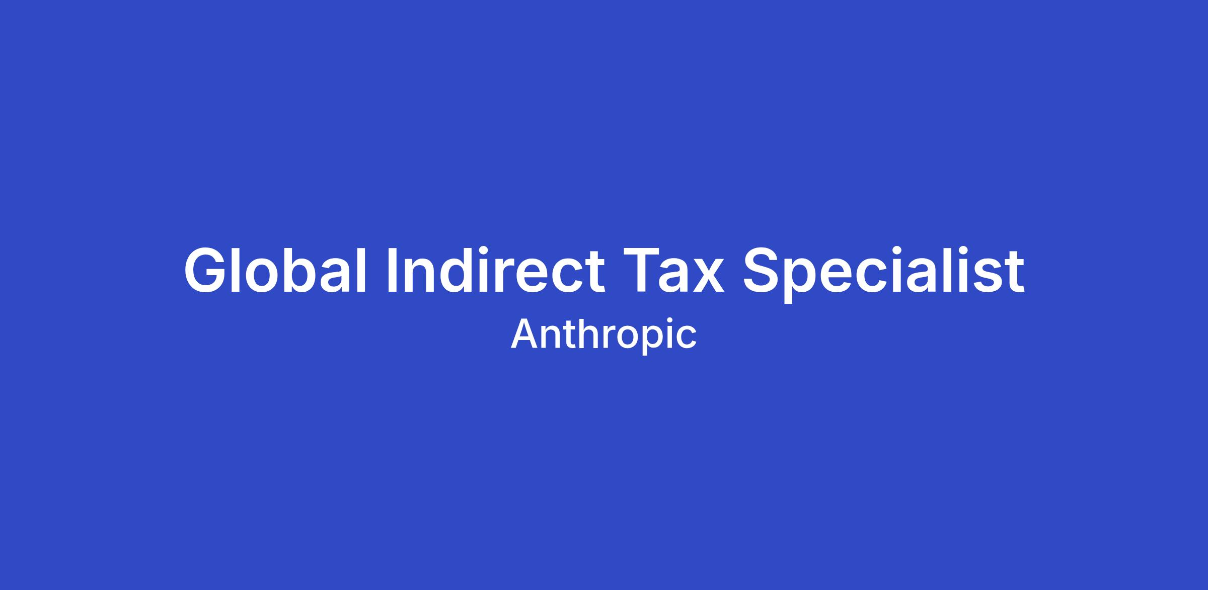 Anthropic is seeking an experienced Indirect Tax professional to join our Tax team. In this role, you'll be responsible for developing and executing our global indirect tax strategy across US sales tax and international VAT/GST. As we continue to scale our AI products globally, you'll play a critical role in ensuring tax compliance, optimizing our tax position, and building scalable systems and processes. You'll work cross-functionally with Finance, Accounting, Legal, Product, and Engineering teams to embed tax considerations into our business operations from the ground up.