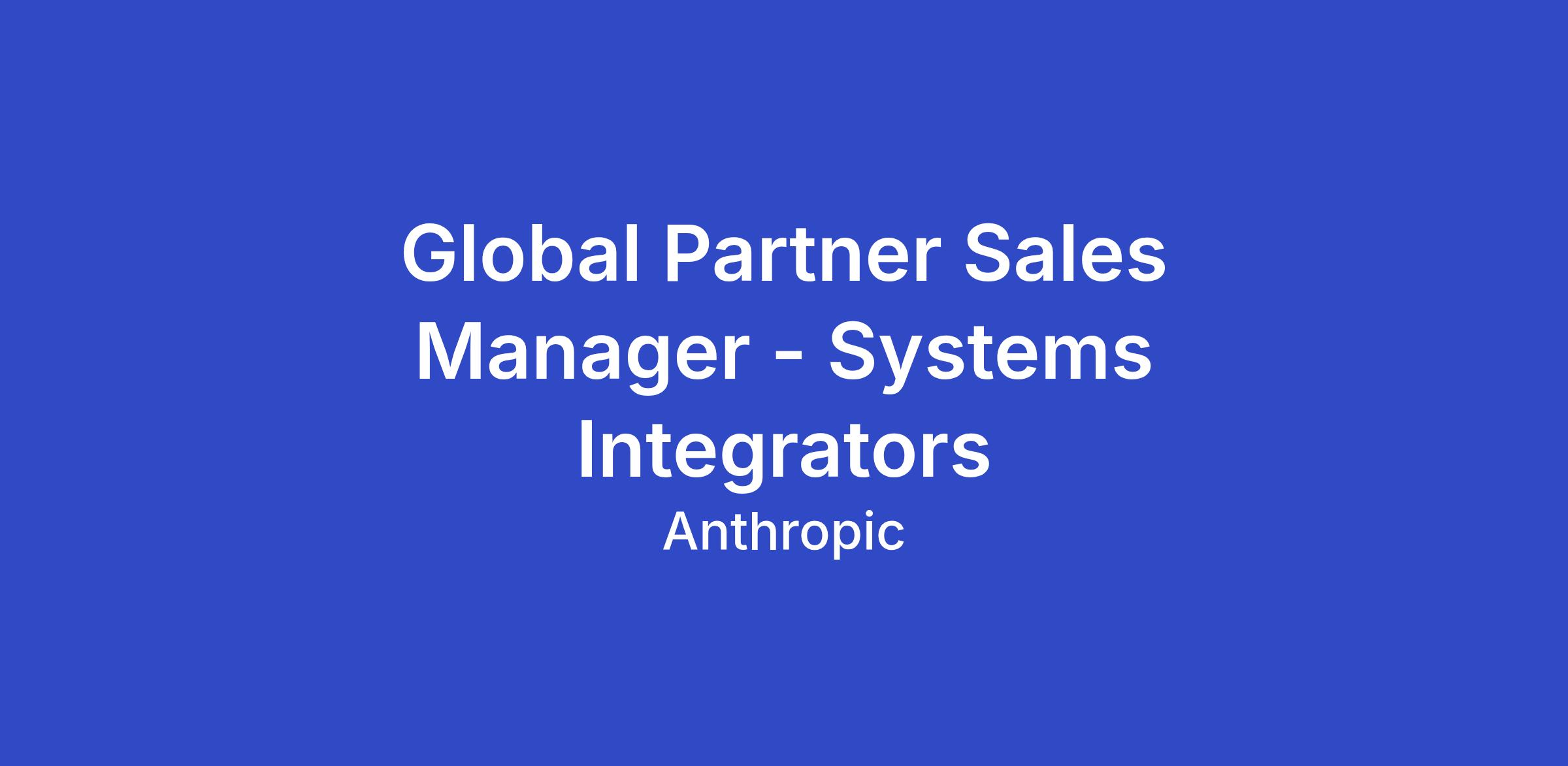 As a Global Partner Sales Manager for Systems Integrators at Anthropic, you will drive revenue growth through our strategic SI partner ecosystem. This role is critical to scaling how we engage, enable, and grow alongside our SI partners who are bringing Claude to enterprise customers worldwide. You'll own the commercial relationship with key partners, develop joint go-to-market strategies, and build the operational frameworks that transform our emerging partner program into a world-class revenue engine.