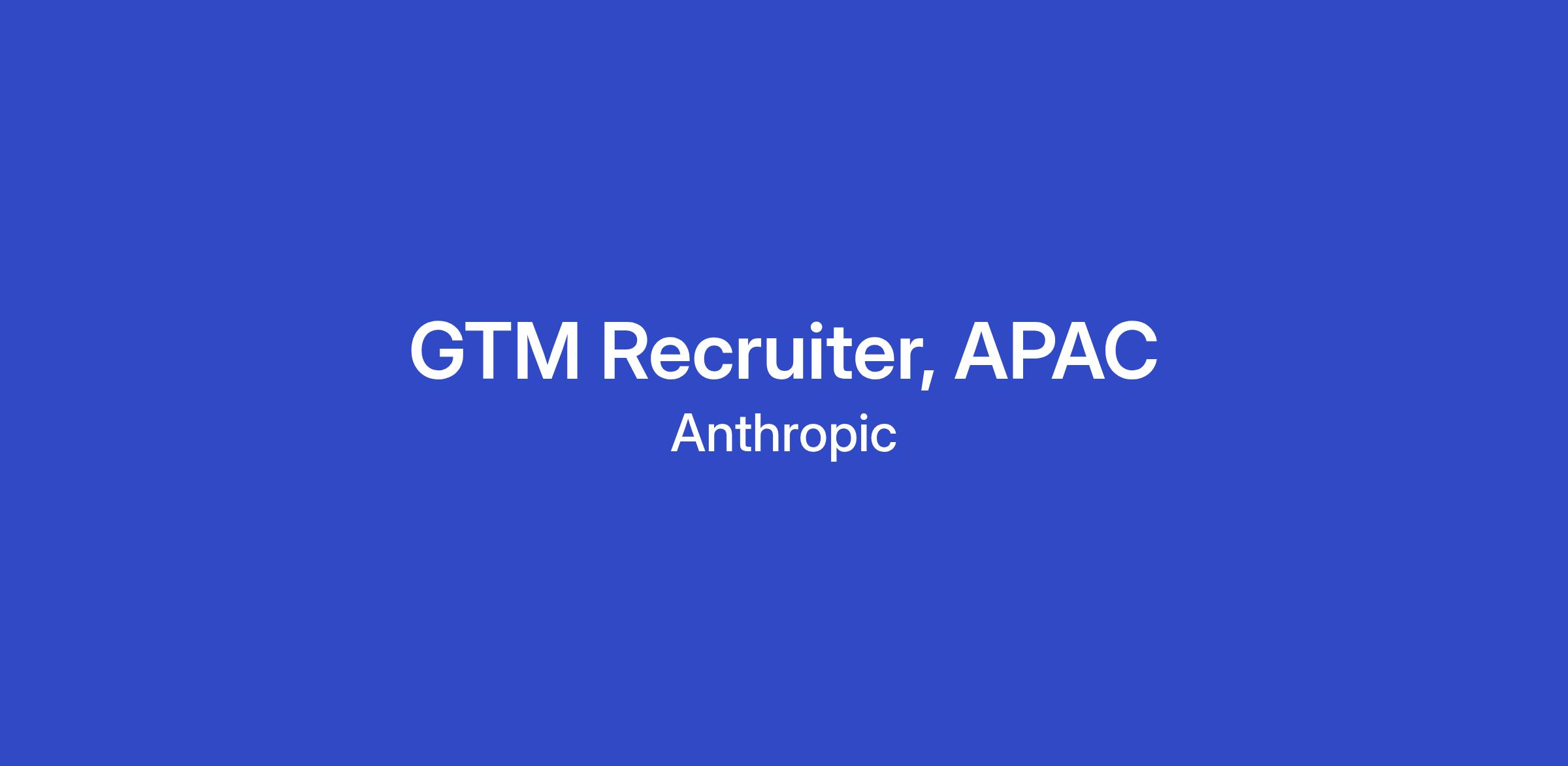 Anthropic is seeking a results-driven Go-To-Market Recruiter to help establish and scale our teams across Sales, Post-Sales, Partnerships, Applied AI, and Revenue Operations functions in the APAC region. Based in Tokyo, you'll be instrumental in our expansion across Japan and Korea—serving as a founding recruiting hire in the region while building exceptional teams from the ground up. This role requires someone who can bridge cultural gaps, maintain Anthropic's high standards, and work collaboratively with our regional leadership to establish our local presence. The ideal candidate thrives in ambiguous, fast-paced environments and excels at building relationships across diverse cultural and business contexts.