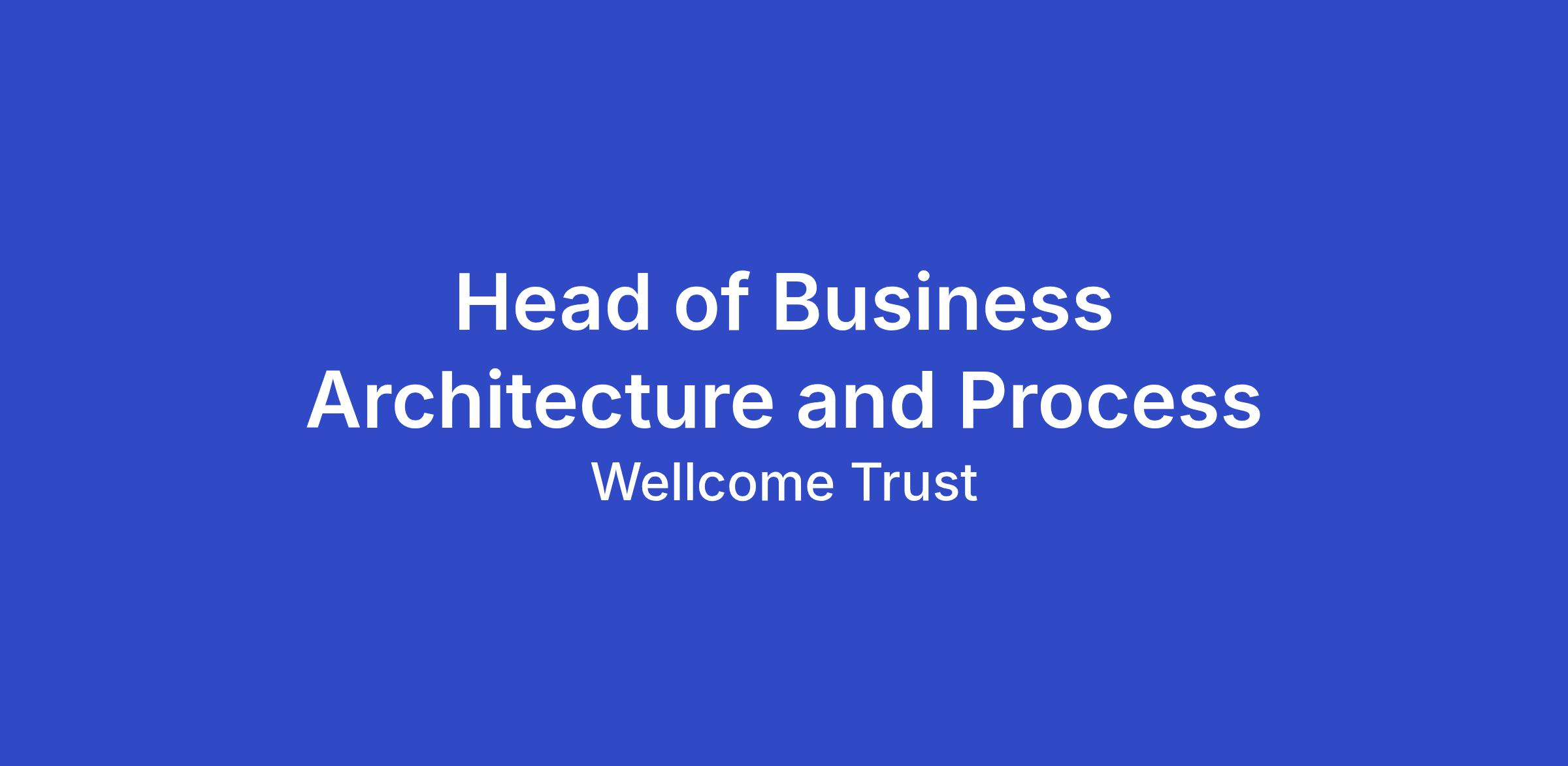 We are now recruiting for a Head of Business Architecture and Process on a permanent contract. The ideal candidate will be an influential leader with deep expertise in enterprise architecture and operating model design who has the ability to drive improvement at all levels and ensure Wellcome is fit for the future.