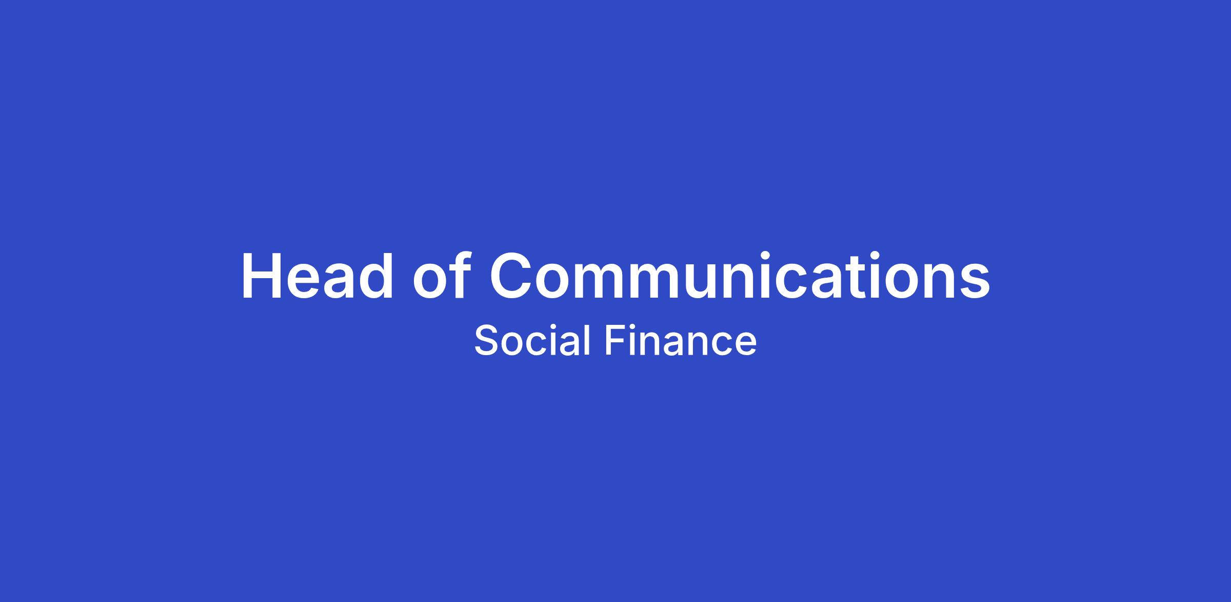 Social Finance seeks an innovative and strategic leader to serve as Head of Communications. In a dual reporting role to the CEO and Managing Director of the Social Finance Institute, this individual will be responsible for leading a high-performing 4-person communications team as well as communications efforts for the entire organization. The Head of Communications will play a crucial role in enhancing the visibility of Social Finance’s work and both shaping and executing our communications strategy, ensuring that our mission, impact, and initiatives are effectively communicated to diverse and new audiences. The ideal candidate will bring a proven track record of excellence in strategic communications, meaningful experience leading high-performing teams, and an ability to leverage their existing network to increase Social Finance’s influence. Responsibilities will include, but are not limited to, the following: