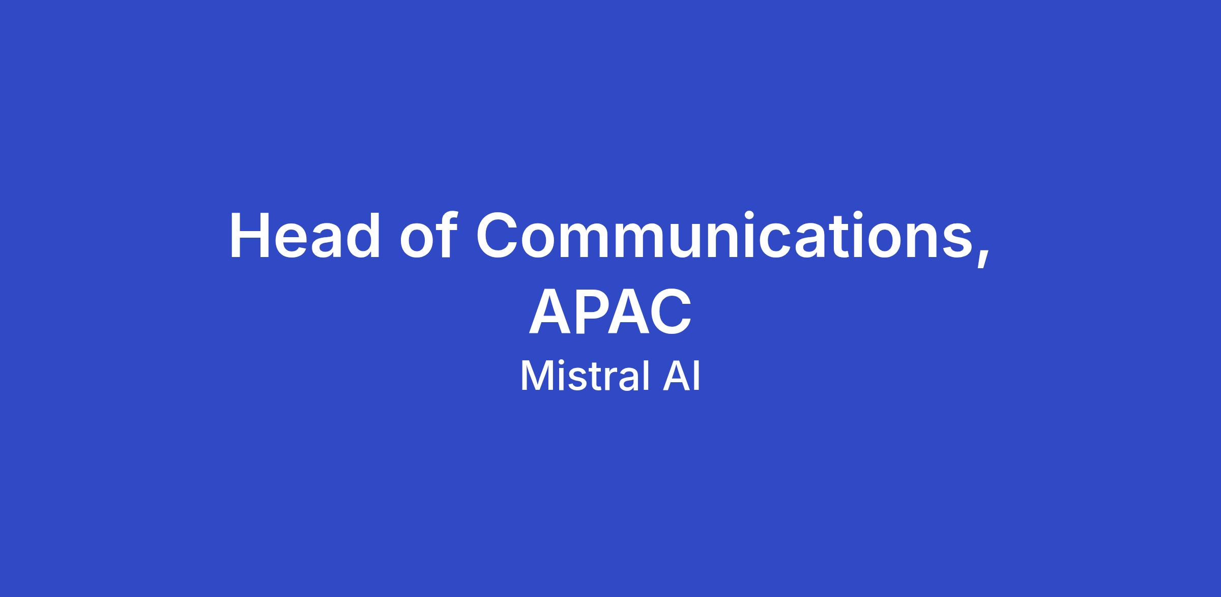 As Head of Communications APAC Lead you will play a crucial role in shaping our company's narrative and ensuring our vision, mission, and values are effectively communicated to all stakeholders in the region and support our business acceleration in the Asian market. You'll build compelling messaging to ensure Mistral's USP is clear and different from other players in the market and drive media relations to develop strong visibility for Mistral in the press.