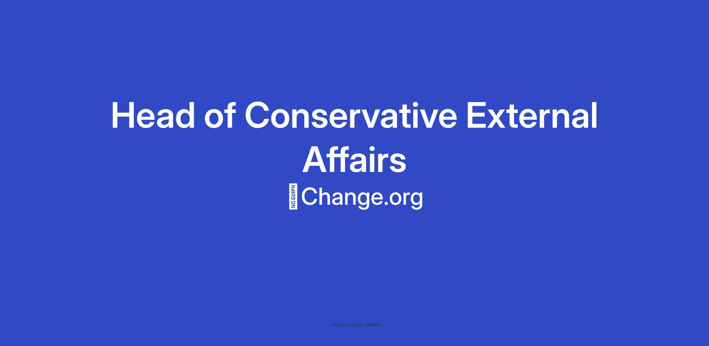 Change.org is searching for a Head of Conservative External Affairs to amplify our relationships with key conservative thought leaders, advocacy groups, political decision makers, industry associations, and nonprofit organizations.