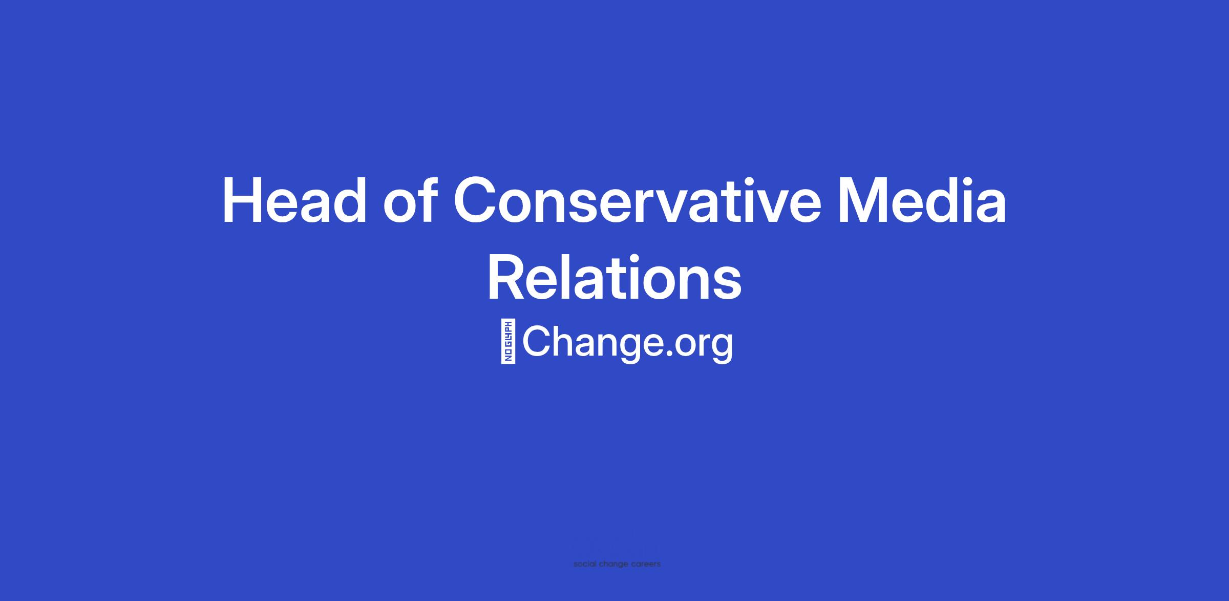Change.org is searching for a Head of Conservative Media Relations to build and promote Change.org campaigns and our organizational strategy with conservative media. You will elevate the message and stories that drive brand awareness and affinity with key conservative audiences, including top tier conservative editors, producers, bookers, journalists, writers, podcast hosts and influencers