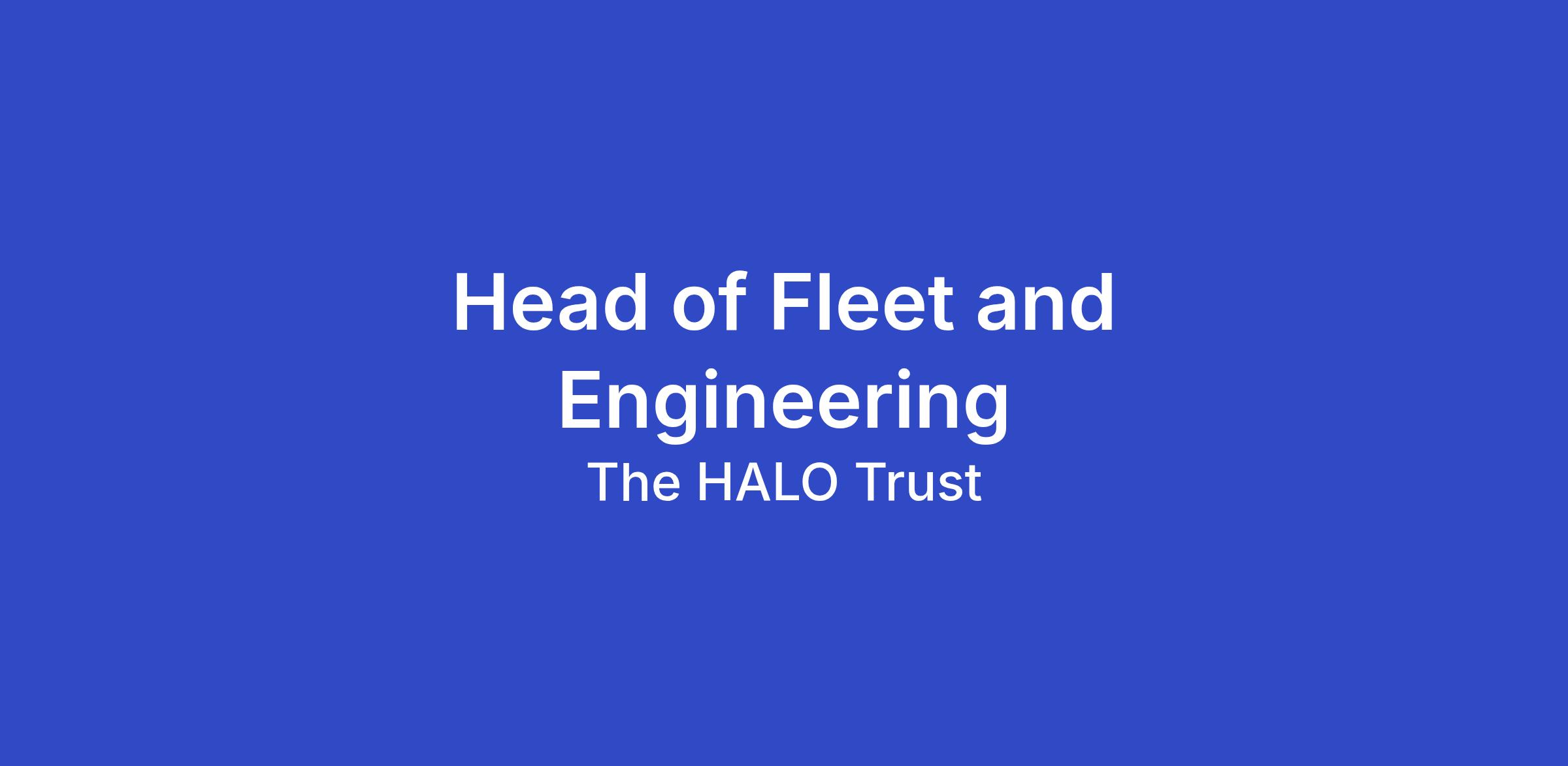HALO is seeking to recruit a skilled and experienced fleet management professional who will advise the programme’s fleet management team, operating across multiple provinces in Angola. The principal role of the Head of Fleet and Engineering is to oversee and coordinate the programme’s fleet, including financial and logistical elements, to ensure that operations and logistics have the necessary vehicle support. The Head of Fleet and Engineering will play a key role in long term fleet department planning, forecasting vehicle and spares requirements. In addition, they will assist other members of staff with advice on the vehicle and logistical requirements for deployment, including seasonal factors, fuel consumption, water supply, tentage, generators and so on; as well as provide introductions to contacts in Angola who might benefit the programme.