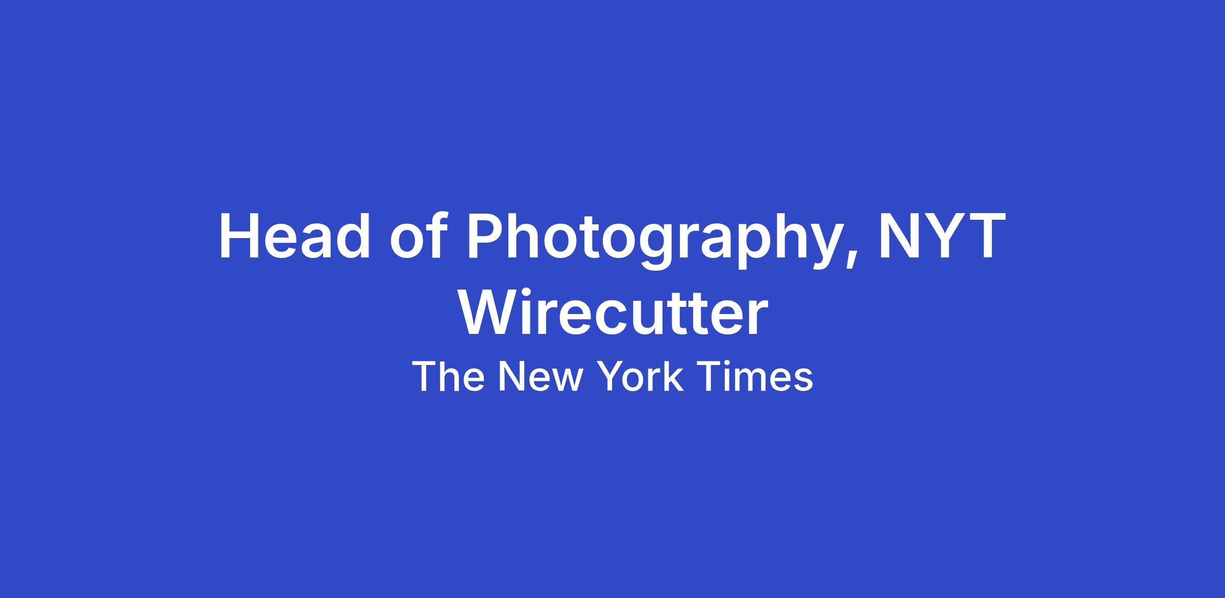 Wirecutter is looking for a Head of Photography to lead the evolution of our visual storytelling. Photography is central to how we do journalism here, and we're investing to make it even more so. You'll report to the Creative Director, work closely together to set the photography vision for the brand, and have real autonomy to run your department from our dedicated studio in Long Island City.