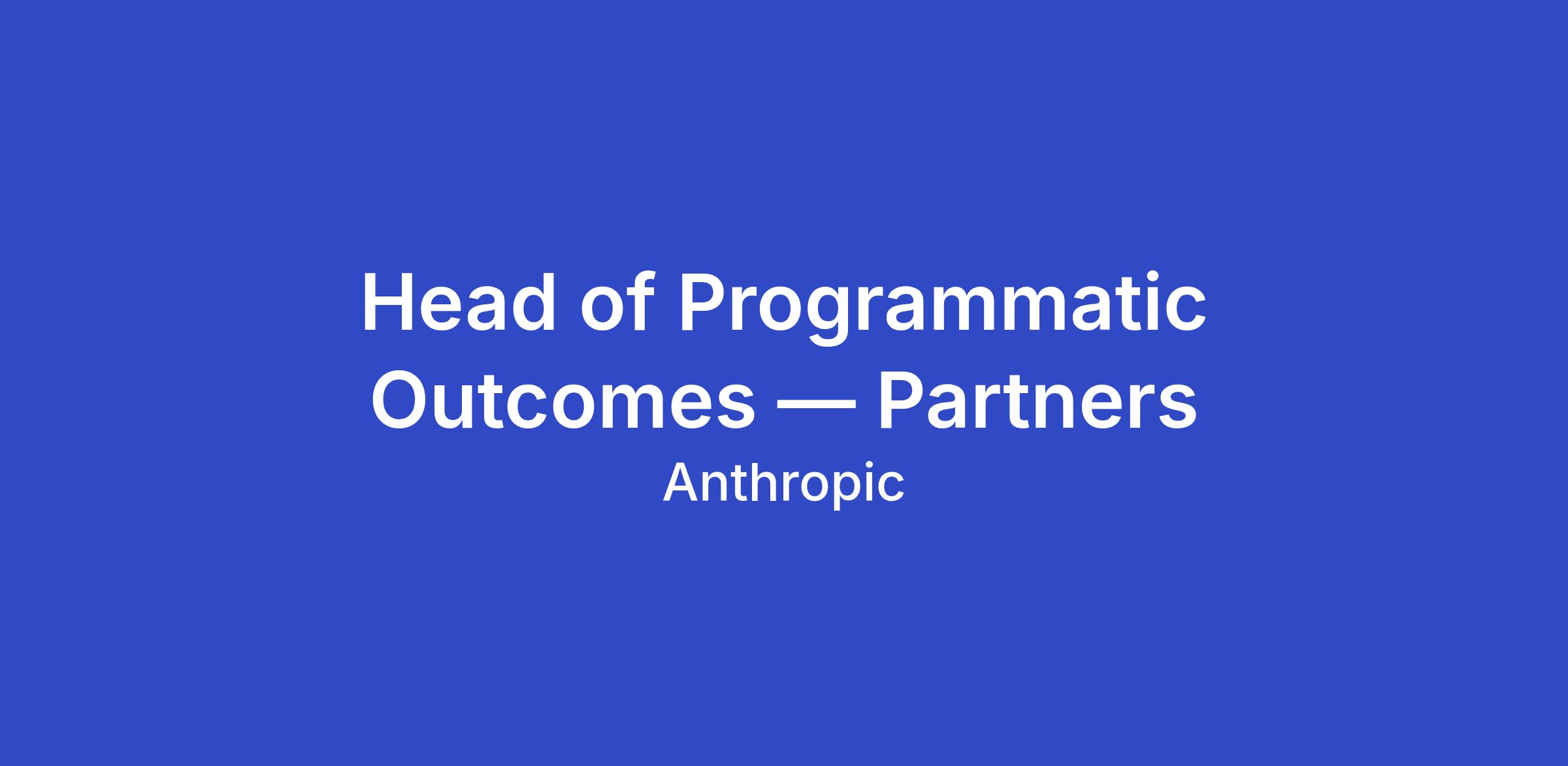 Anthropic has 1,000 strategic accounts — but its TAM of 96.6 million knowledge workers is orders of magnitude larger. Direct coverage will never close that gap. A partner ecosystem is an important mechanism to ensure we train and enable customers to use and love Claude. The Head of Programmatic Outcomes (Partners) is responsible for shaping it — not as a standalone function, but as a focused sub-goal of Anthropic’s broader Partnerships strategy that no single existing team is positioned to own end-to-end. Anthropic already has Alliances, Sales, and a Partnerships org; this leader holds the connective tissue that turns those relationships into a reliable activation and enablement channel.