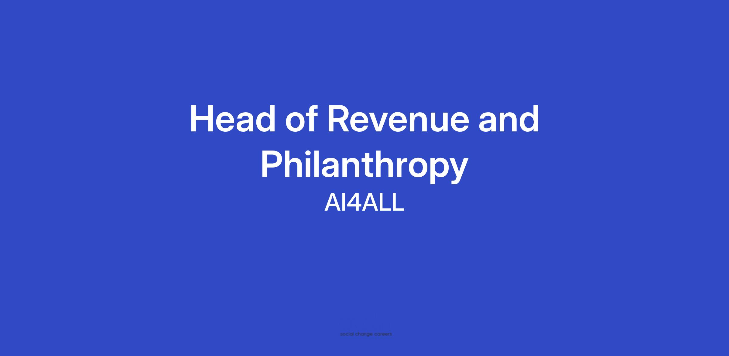 Reporting to the CEO and serving as a member of the leadership team, the Head of Revenue and Philanthropy will lead and scale AI4ALL’s comprehensive revenue strategy across philanthropy, partnerships, and business innovation, ensuring alignment with the organization’s long-term vision and growth goals. As a key member of the team, this role will build and operationalize the development function from the ground up, establishing the systems, partnerships, and strategies necessary to expand AI4ALL’s reach and sustainability significantly.