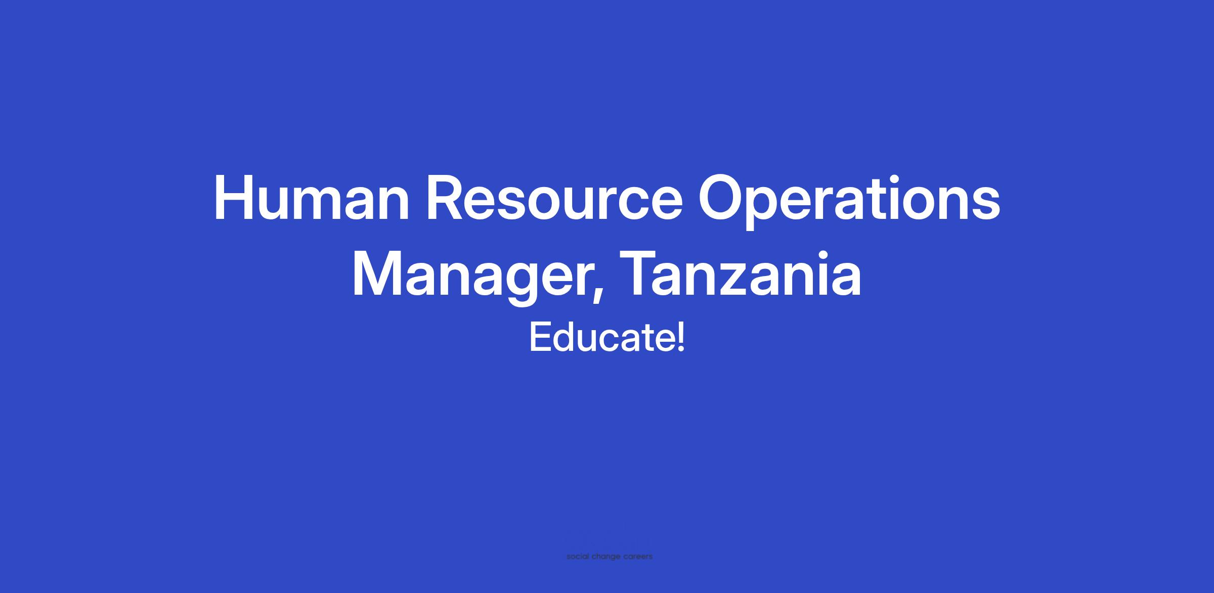 Educate!, the largest youth skills service provider in East Africa is looking for a dynamic and enthusiastic Human Resource Operations Manager who will play a critical operational leadership role in ensuring the smooth functioning of Educate!’s people operations in Tanzania. This position combines strategic oversight with hands-on execution across recruitment, employee experience, performance management, compliance, and HR administration. Working closely with the Managing Director and the Global People Team, the HR Operations Manager ensures that Educate! maintains a culturally aligned, compliant, and high-performing team. The ideal candidate is systems-oriented, detail-driven, and passionate about building strong employee experiences that empower teams to perform at their best.